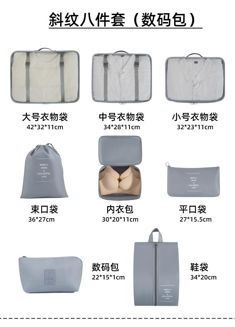 Bolsa de almacenamiento para viajes transfronterizos, conjunto de ocho piezas, bolsa de almacenamiento para viajes de negocios, bolsa de almacenamiento de gran capacidad, bolsa de almacenamiento de viaje impermeable