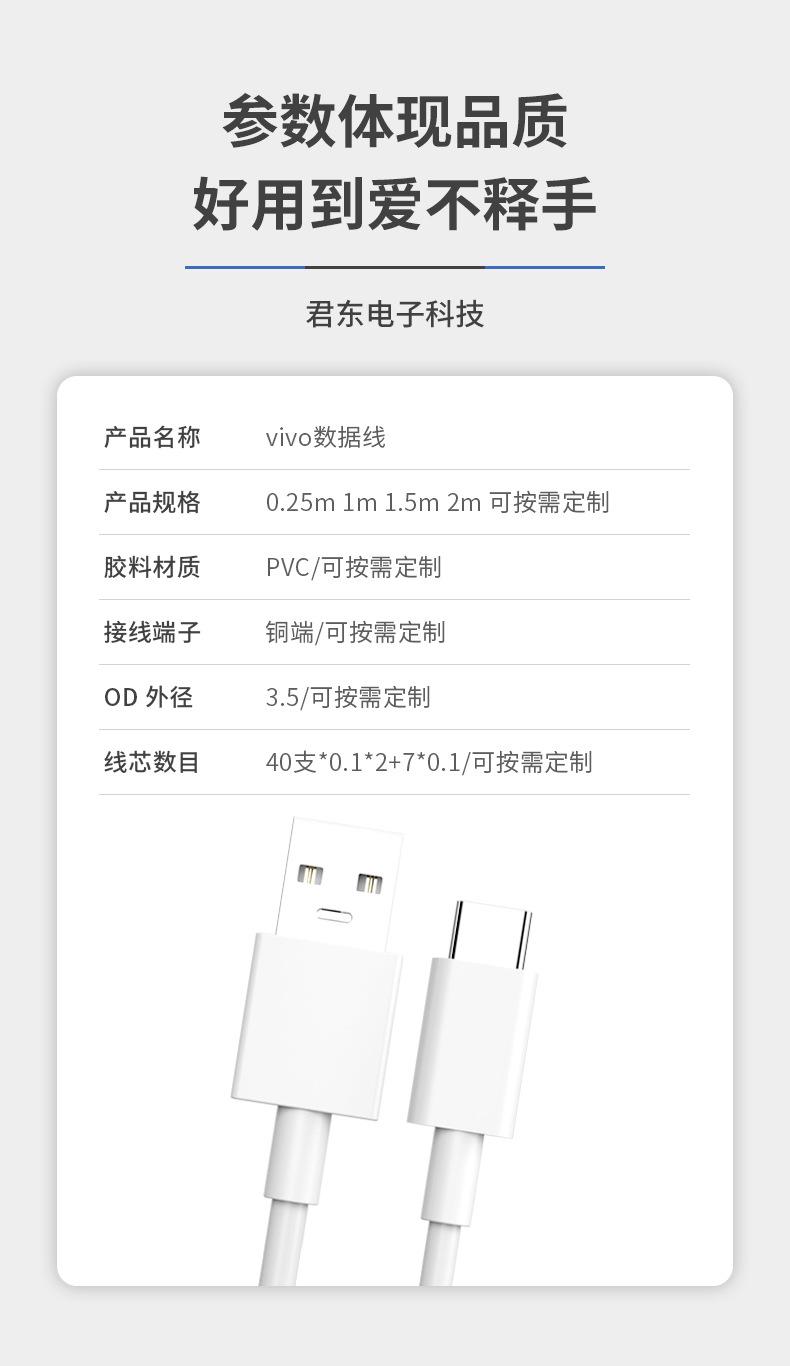 Adecuado para Vivo X60 Cable de Datos 2m Interfaz Tipo-C Blanco Cable de Carga Rápida Cable de Carga para Teléfono Móvil Xiaomi Honor
