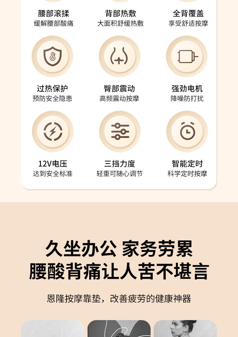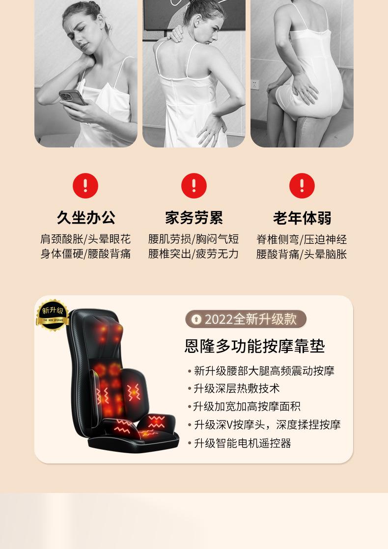 Masajeador Multifuncional de Columna Cervical Enlong para Cuello, Espalda, Cintura, Compresa Caliente, Amasamiento, Masaje Vibratorio, Cojín para Sentarse