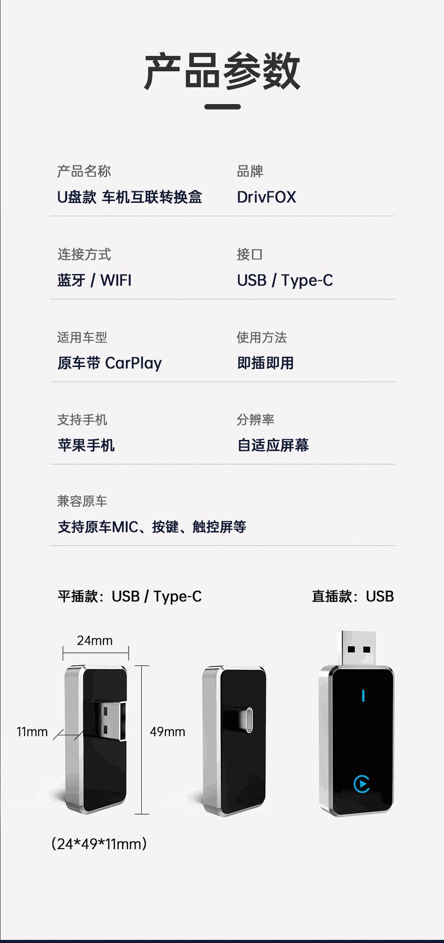 Oem Personalizado Interconexión Coche-Máquina Coche Cableado a Inalámbrico Carplay Módulo Adaptador Receptor