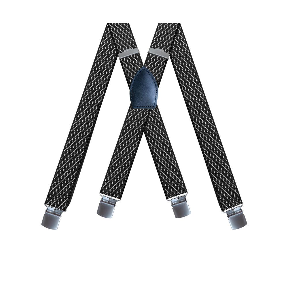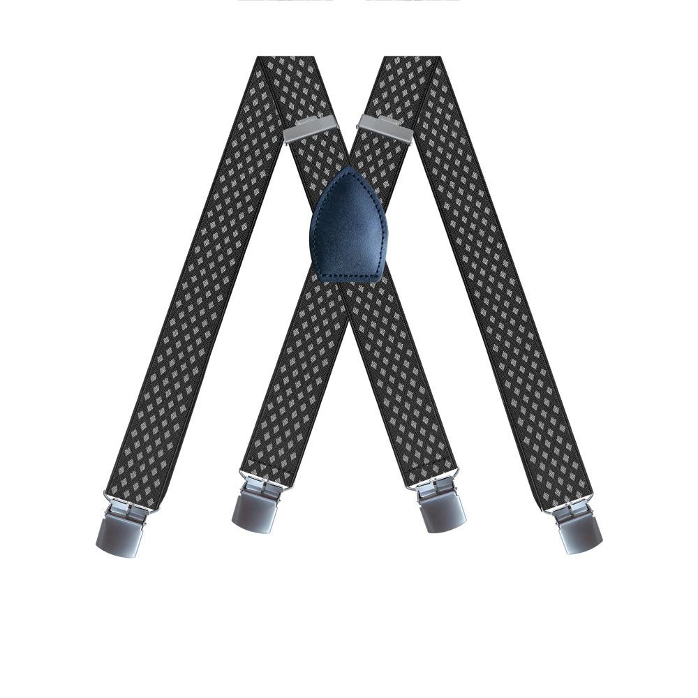| Nombre del producto | Suministro transfronterizo de tirantes elásticos de 4 clips para hombre adulto, tirantes de cuero negro con forma de X para pantalones, en stock |