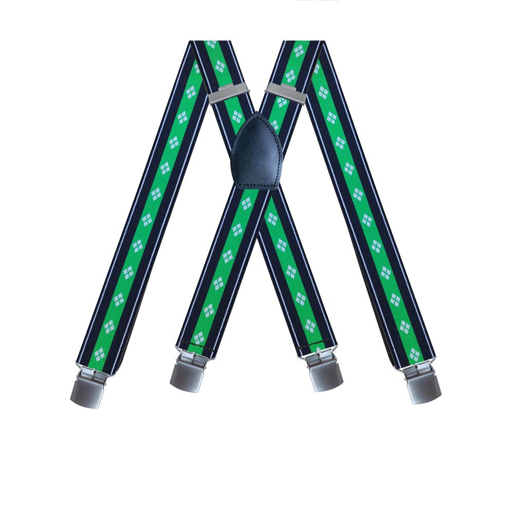 Suministro transfronterizo de tirantes elásticos de 4 clips para hombres adultos de 3,8 cm con diseño de maíz en forma de X y hebillas de gancho negras en stock.