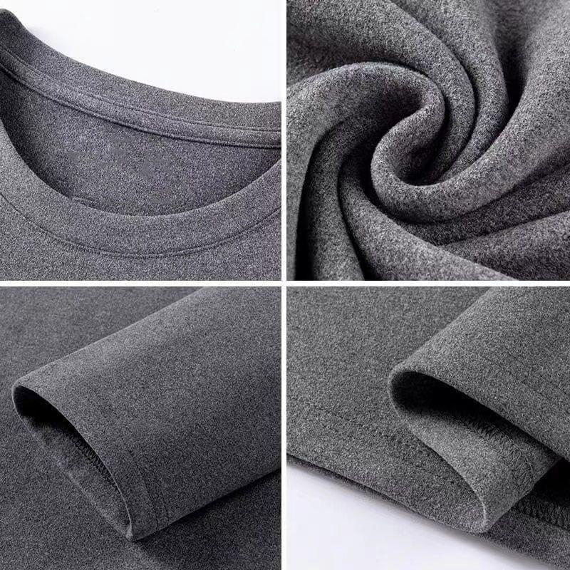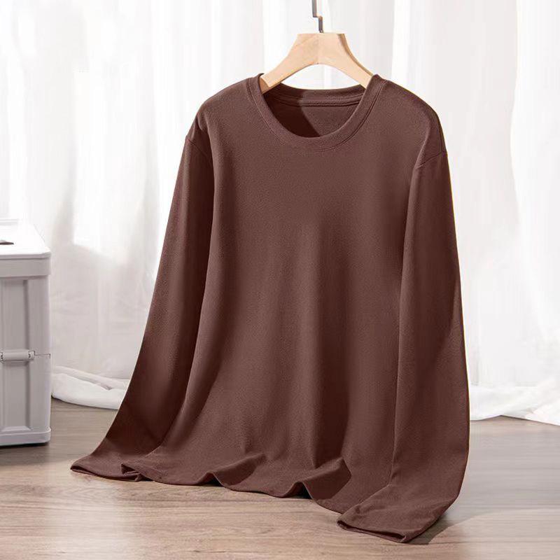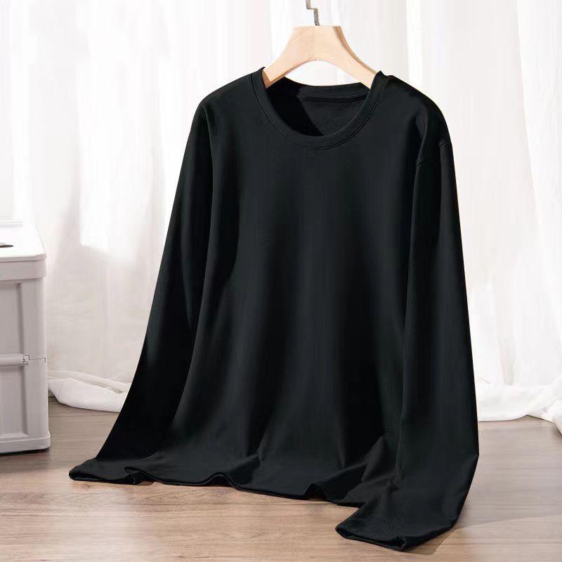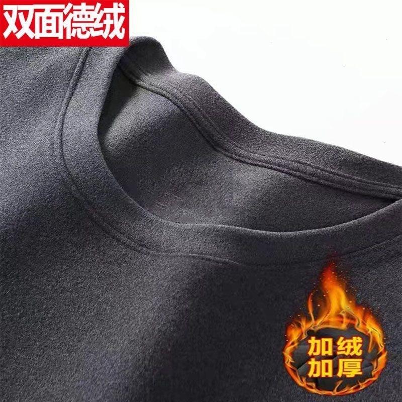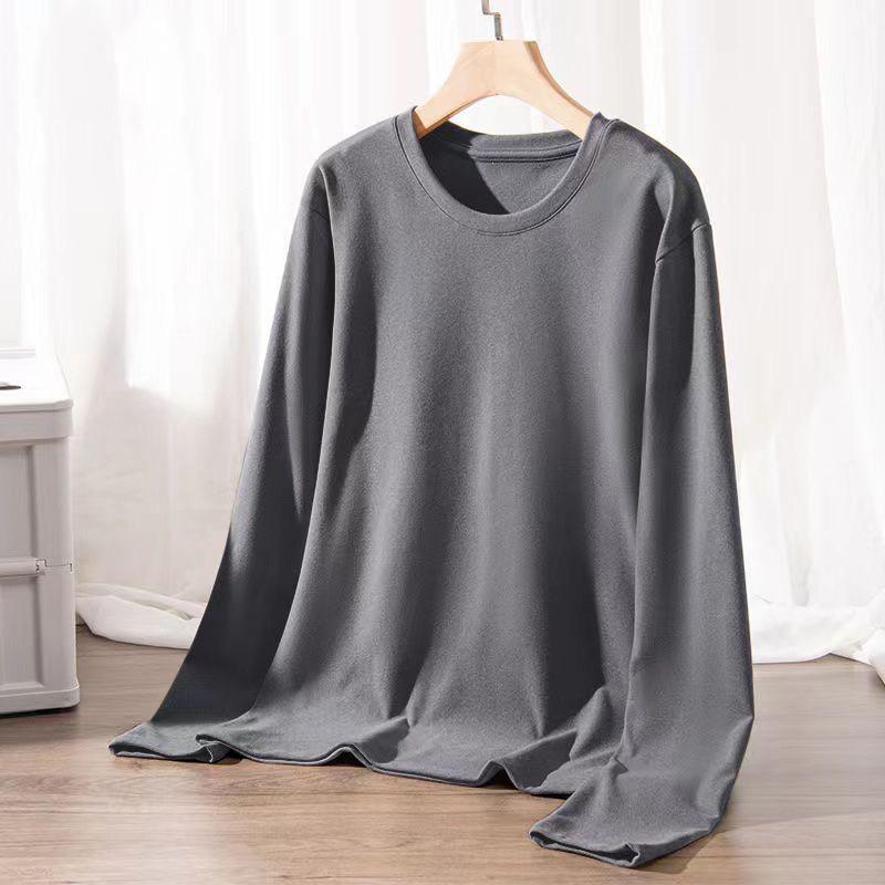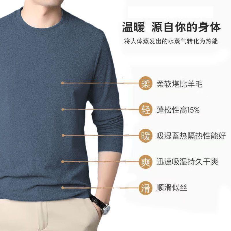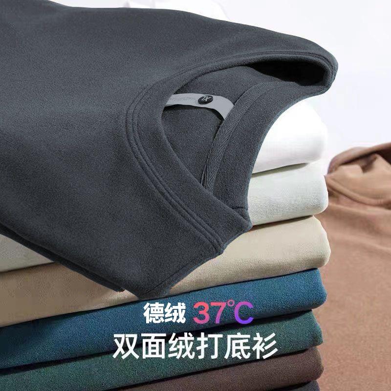 Camisa básica de manga larga con cuello redondo de terciopelo de doble cara y color liso para hombre, cálida, para otoño e invierno, nueva, sin costuras, para otoño