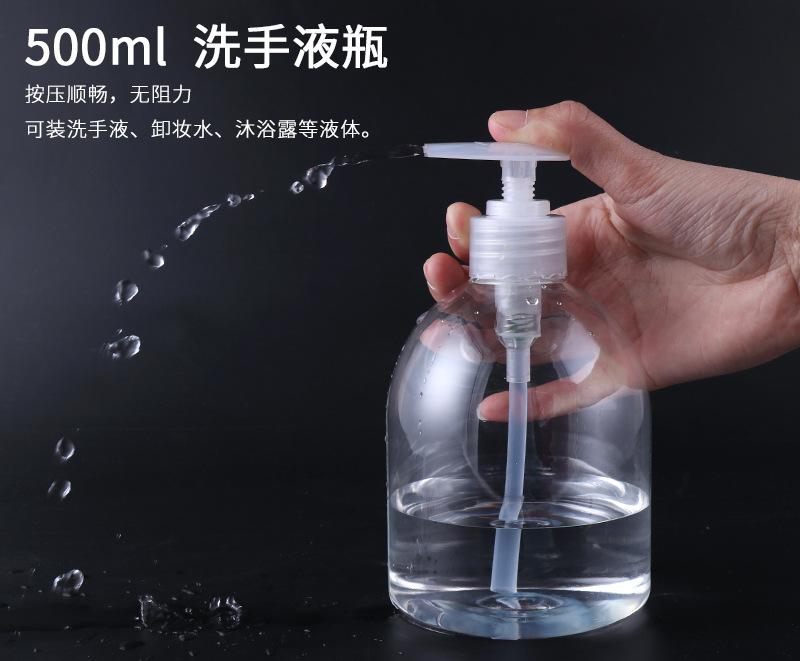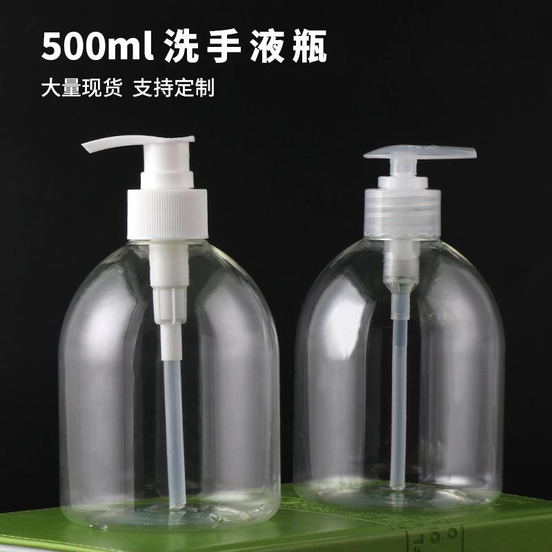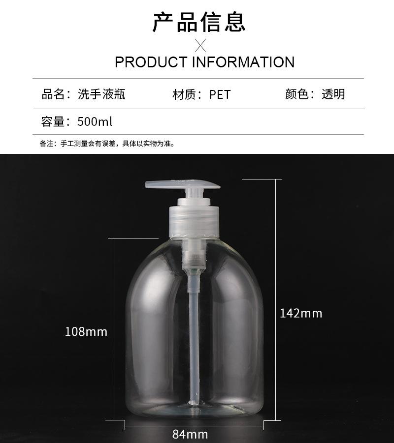 Botella de desinfectante de manos de 500 ml, botella de plástico transparente para mascotas, tipo prensa, subbotella, desinfectante, regadera, botella grande, regadera, venta al por mayor