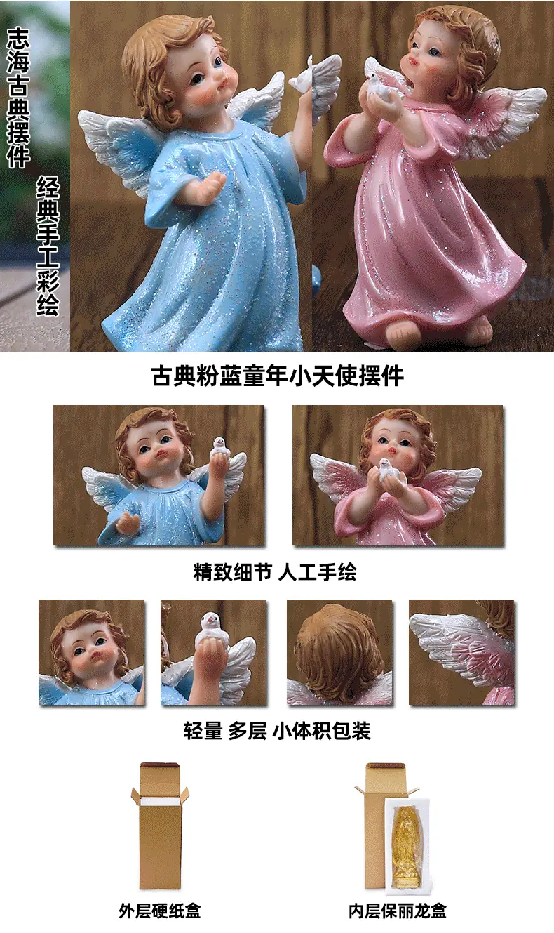 Compra Suministro Transfronterizo de Set de Figuras de Ángel Pequeño Blanco Paloma Rosa y Azul de 9 cm de Alto, Artesanías de Resina Regalo de Cumpleaños Clásico al por mayor en Joom.pro