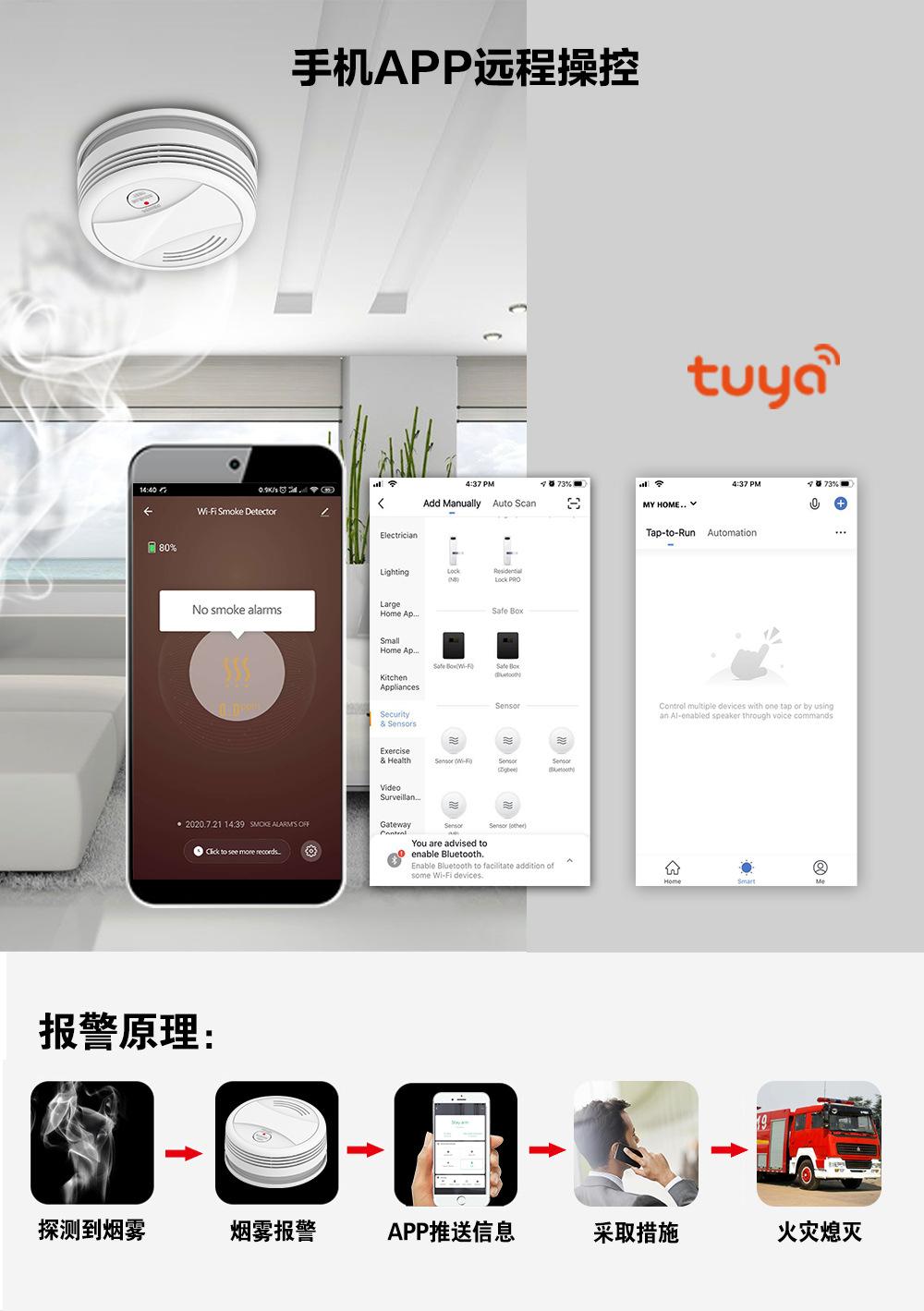 Alarma de Humo Wifi de Fábrica Transfronteriza Pgst Certificada Detector de Humo Tuya Tuya Detector de Humo