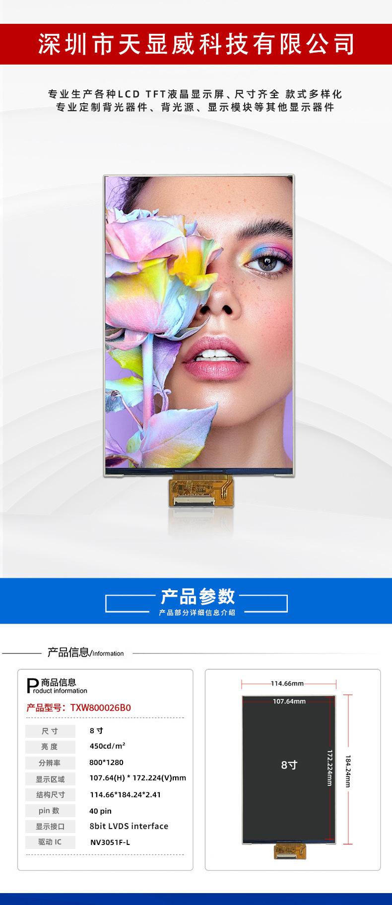 Pantalla LCD Médica de 8 Pulgadas 800*1280 Táctil Capacitivo Opcional Lvds Instrumento de Control de Acceso de Seguridad