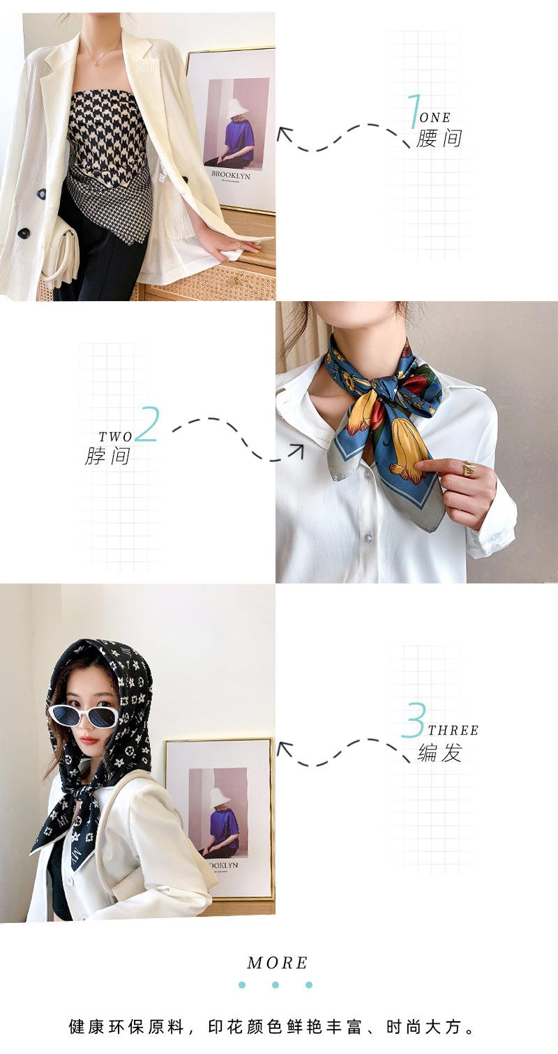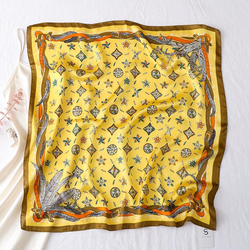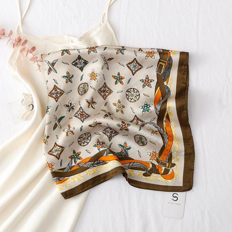 Bufanda cuadrada para mujer, nueva moda 2025, combinable, estilo coreano, de seda, decorativa, profesional, de satén, con estampado geométrico.