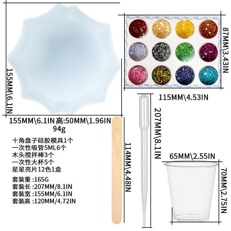 Ten-horn plate silicone mold 1, disposable straw 5ML6, Wood stirring rod 3, disposable mug 5, Star sequins 12 color box