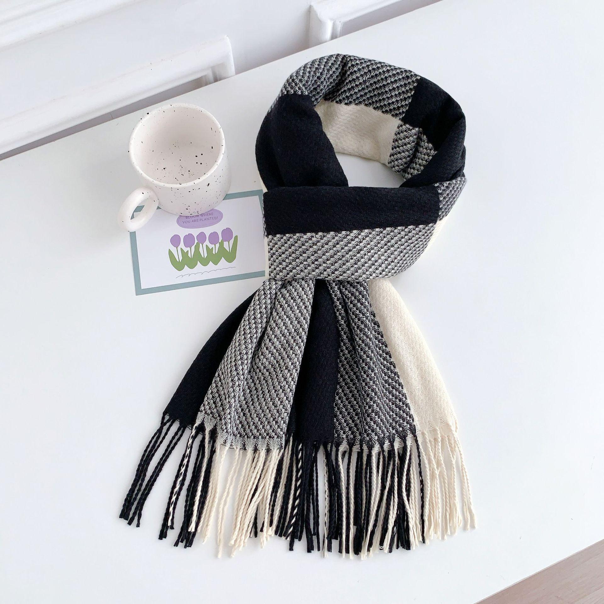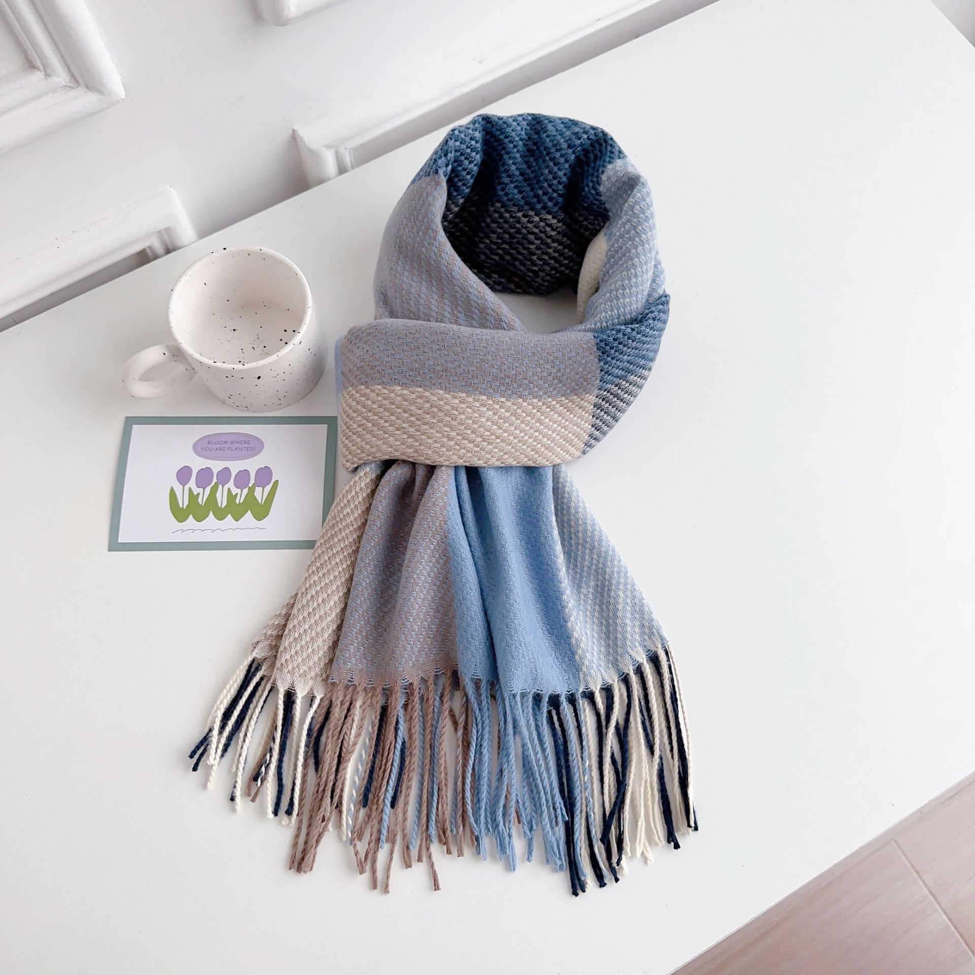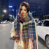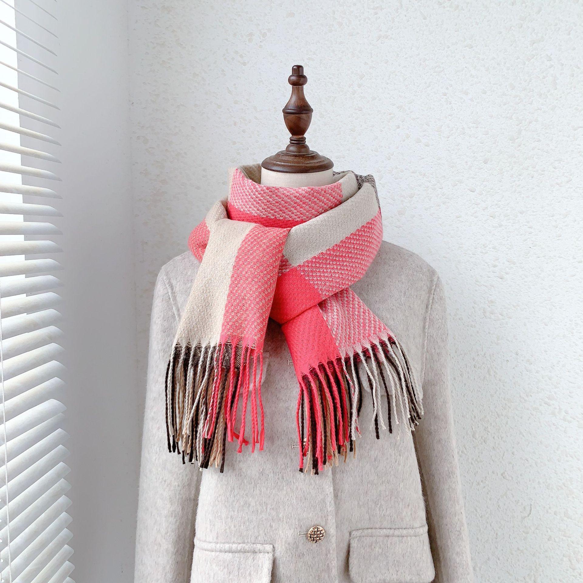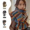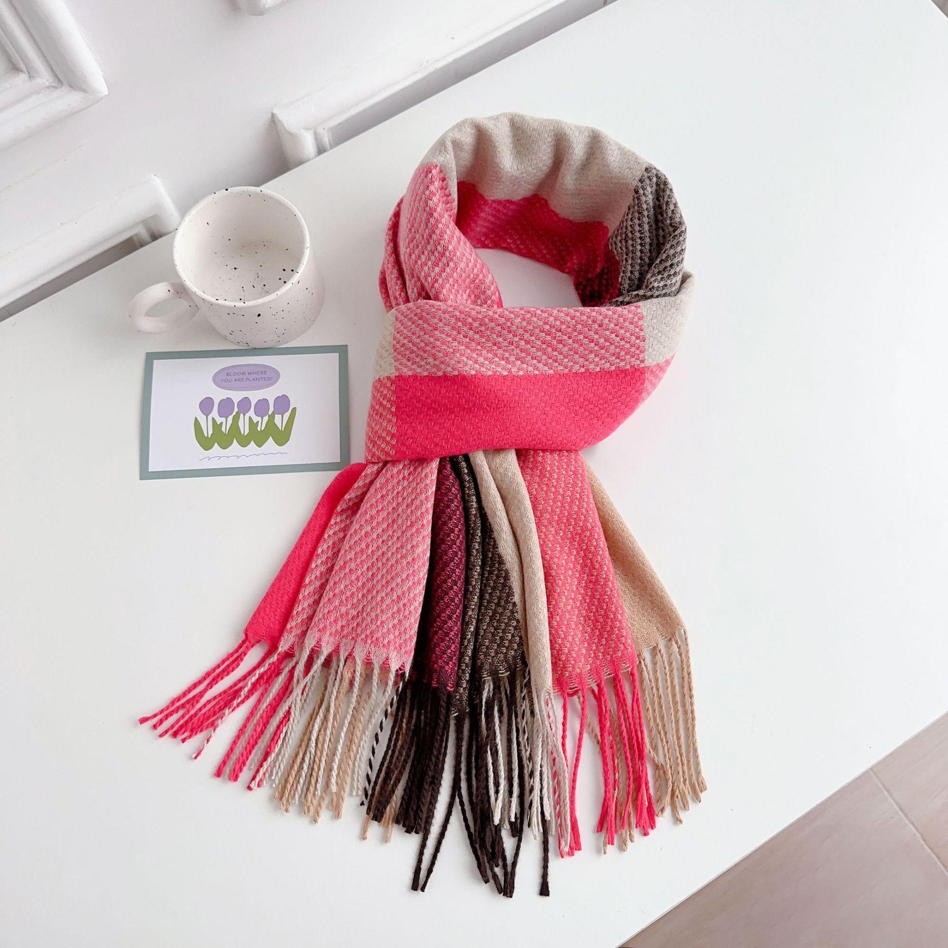 Bufanda Simple de Estilo Tartán Arcoíris de Imitación Cachemira 2025 Nuevo Chal de Invierno Versátil Cálido Grueso con Flecos Bufanda para el Cuello