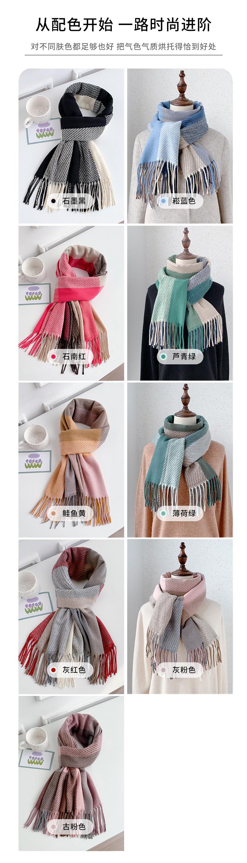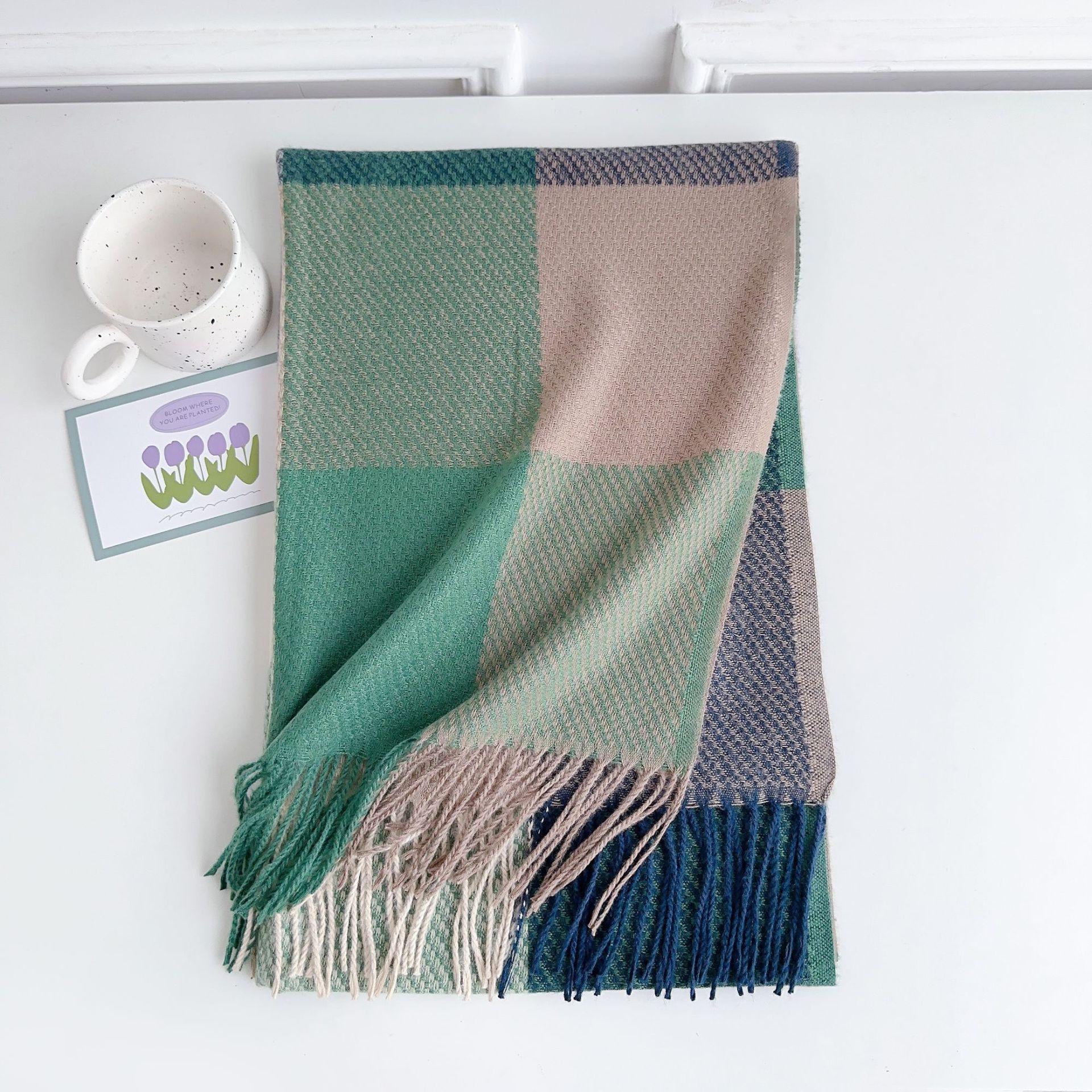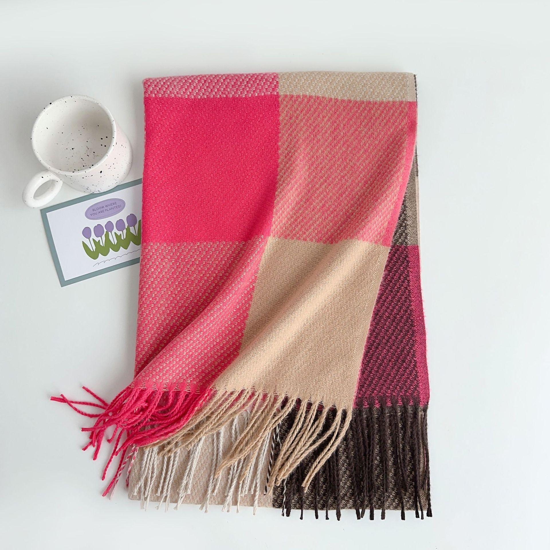 Bufanda Simple de Estilo Tartán Arcoíris de Imitación Cachemira 2025 Nuevo Chal de Invierno Versátil Cálido Grueso con Flecos Bufanda para el Cuello