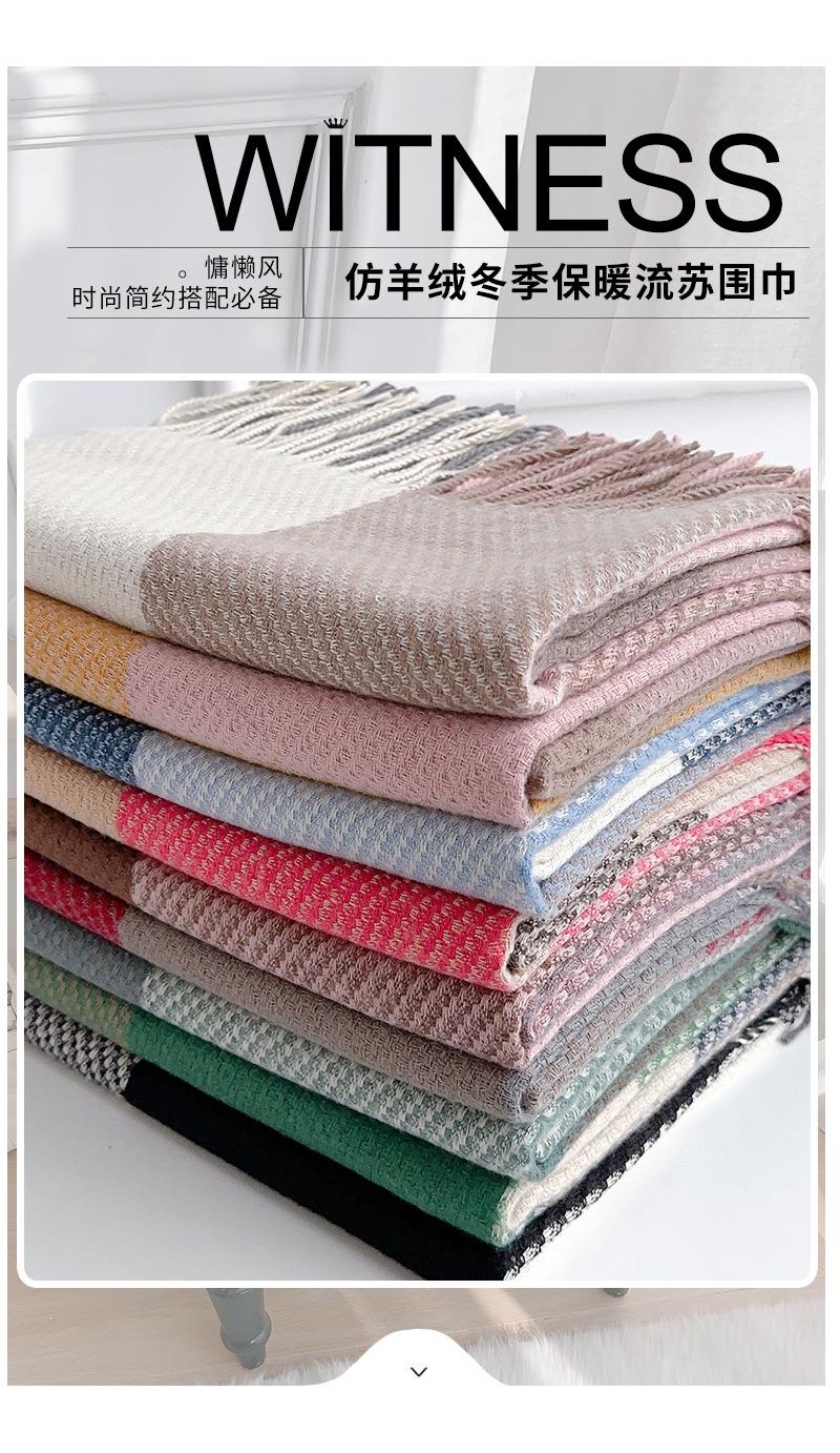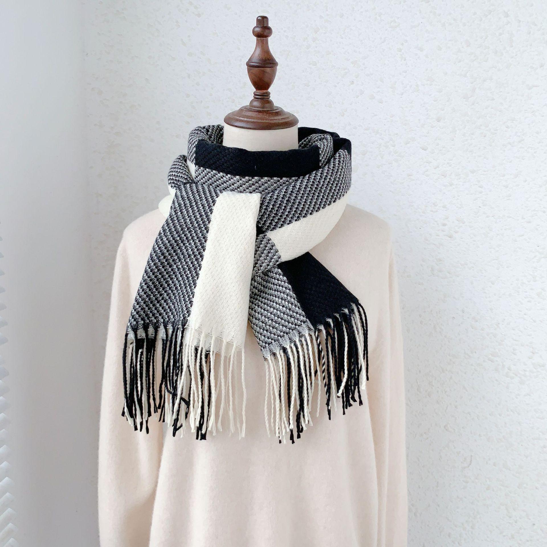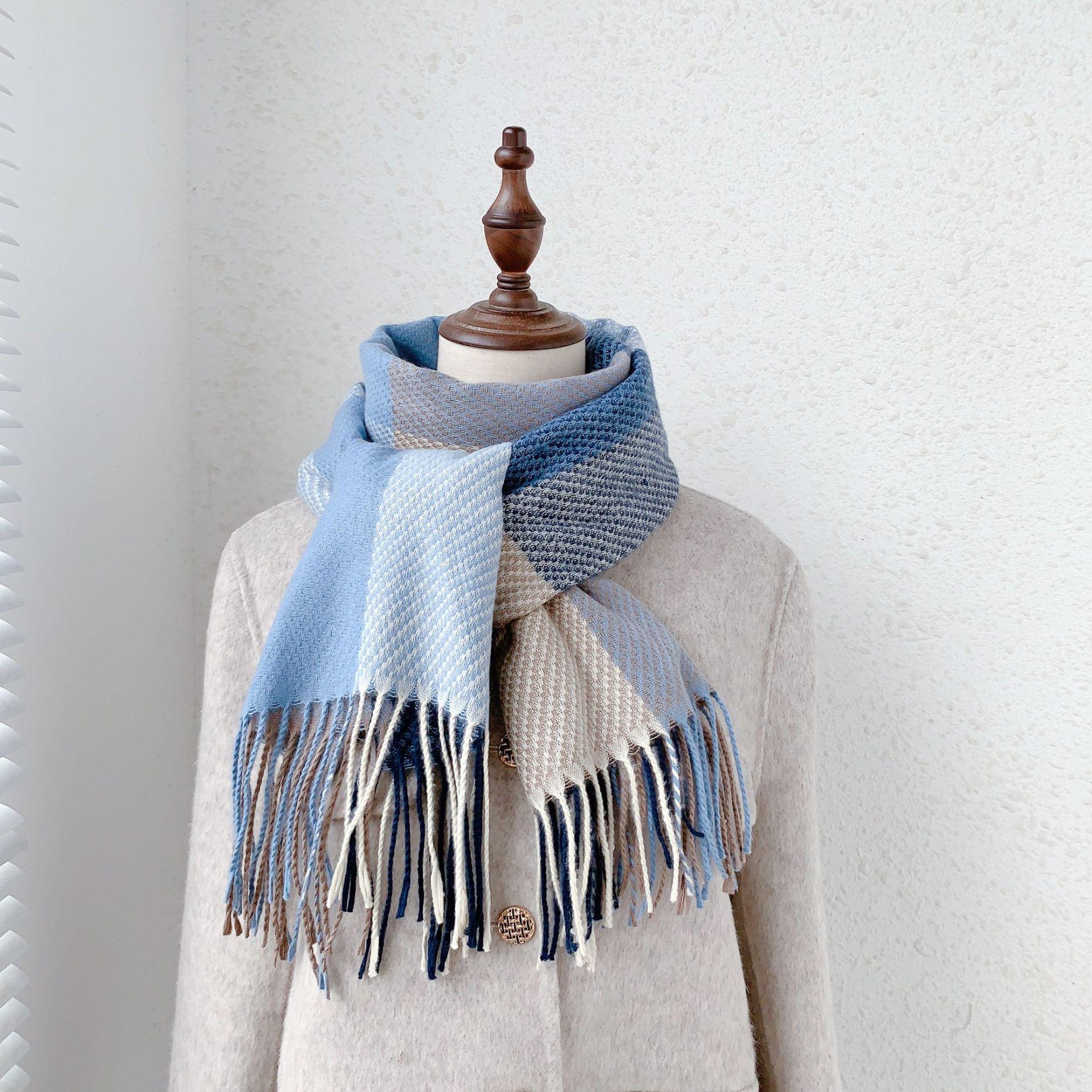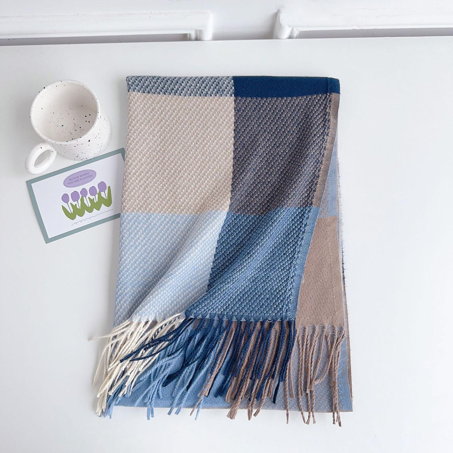Bufanda Simple de Estilo Tartán Arcoíris de Imitación Cachemira 2025 Nuevo Chal de Invierno Versátil Cálido Grueso con Flecos Bufanda para el Cuello