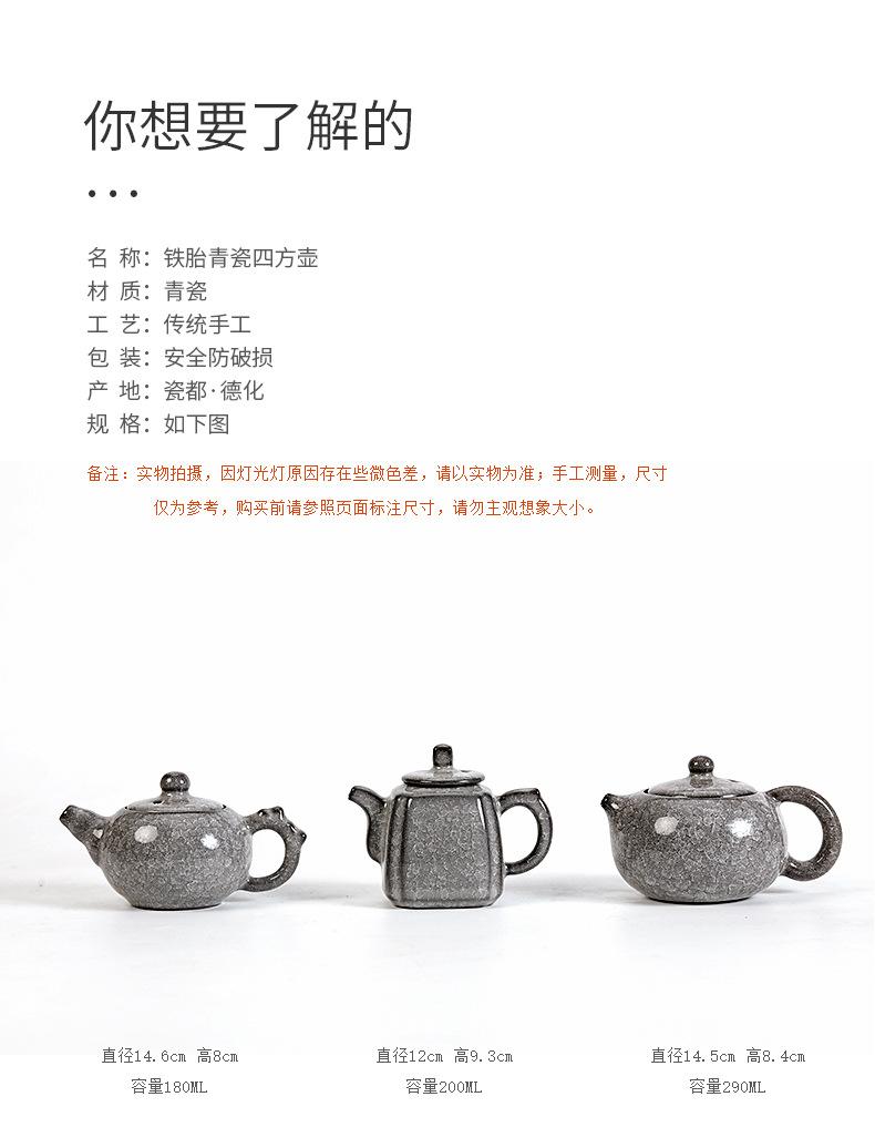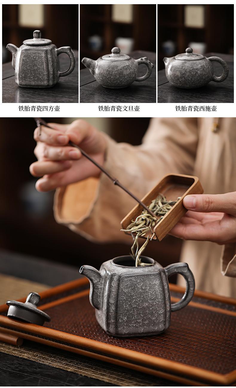 Iron celadon square pot, Iron Celadon Wendan Pot, Iron celadon Xi Shi pot
