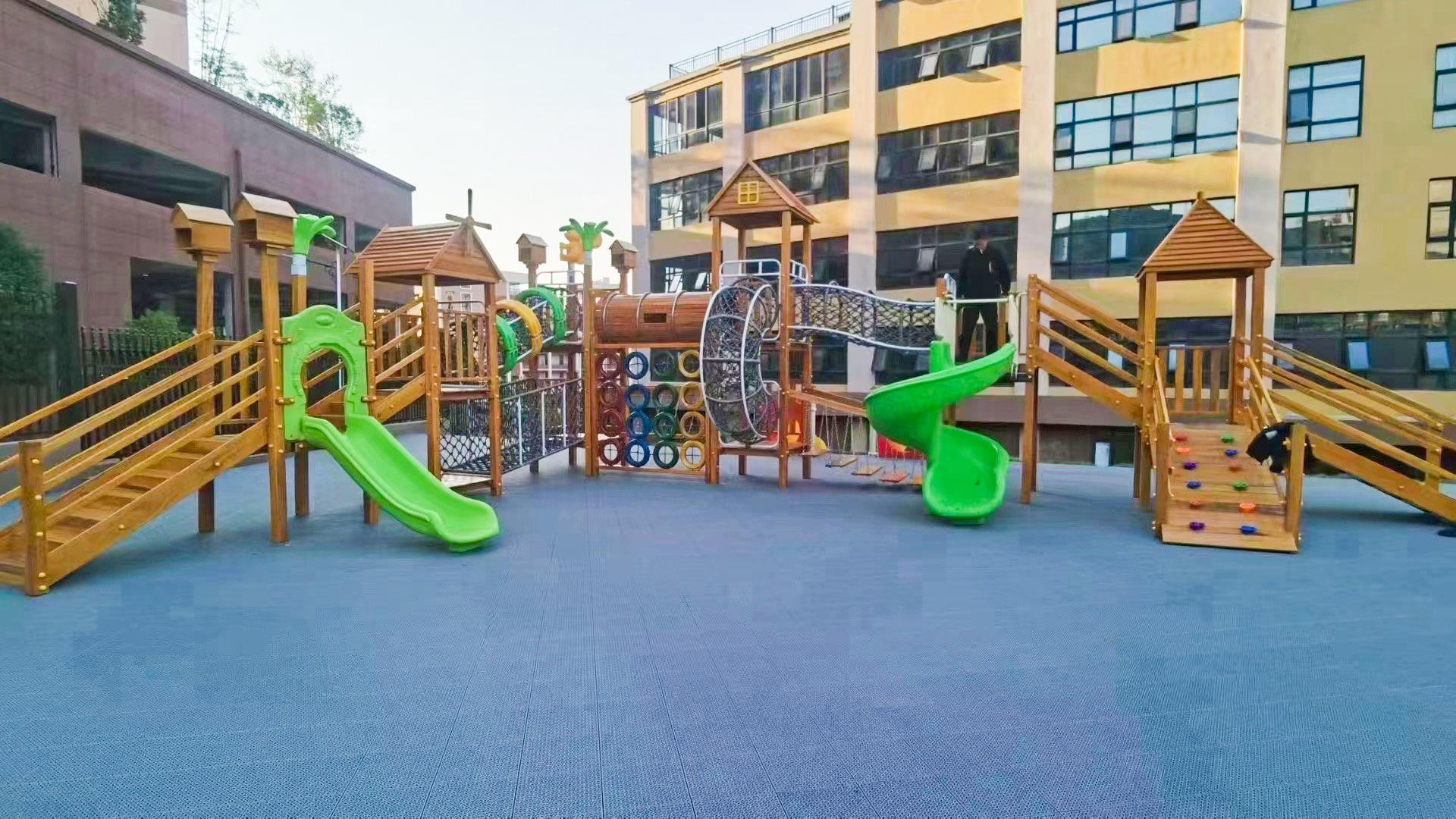 Tobogán de acero inoxidable con agujero de perforación para escalada de combinación de madera para jardín de infantes, comunidad, instalaciones de entretenimiento interior para niños, plástico
