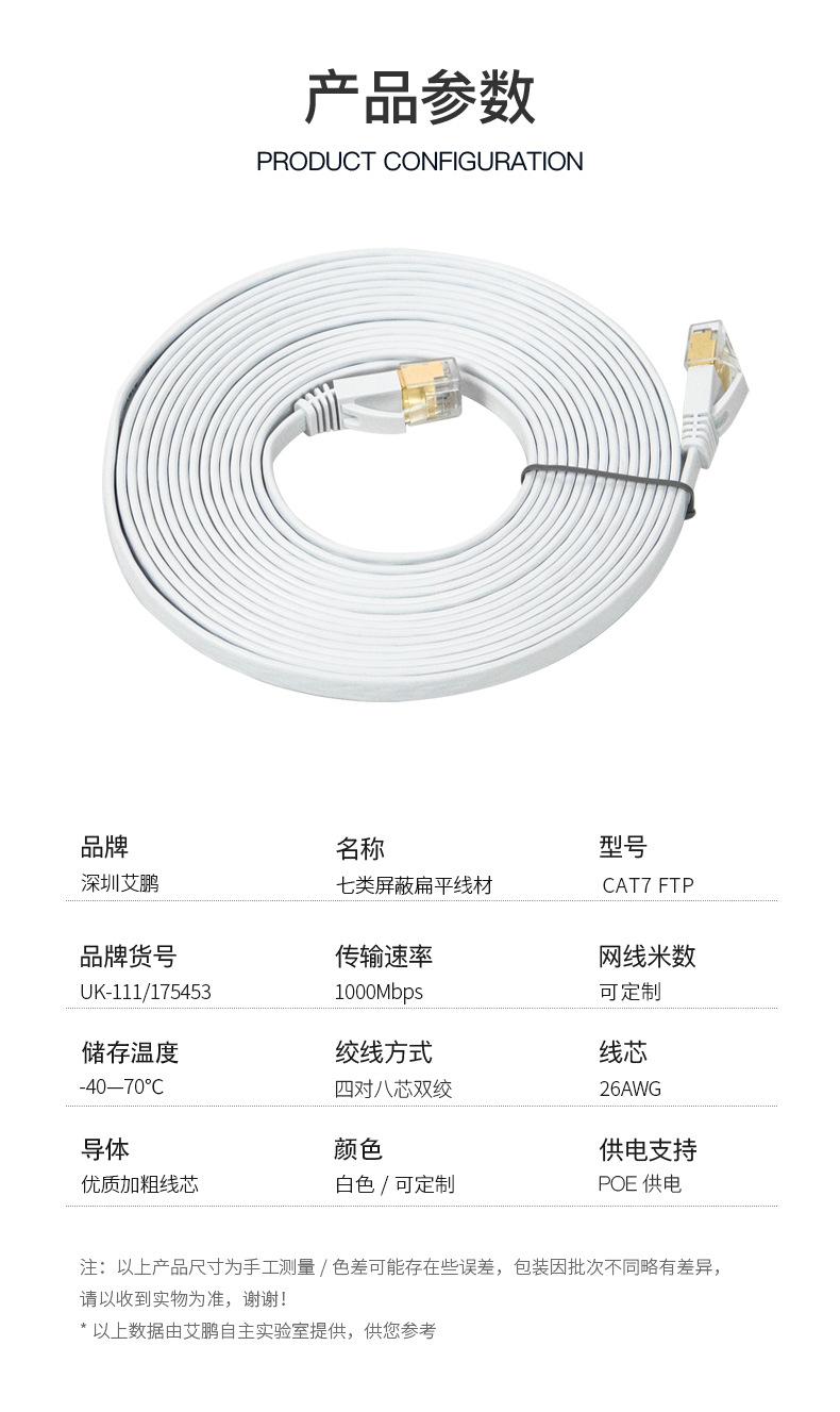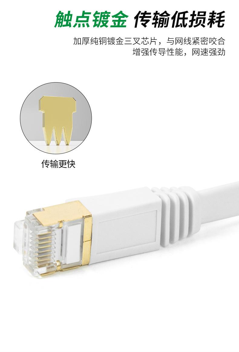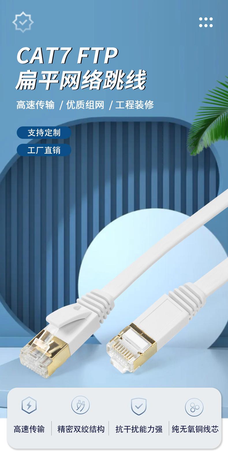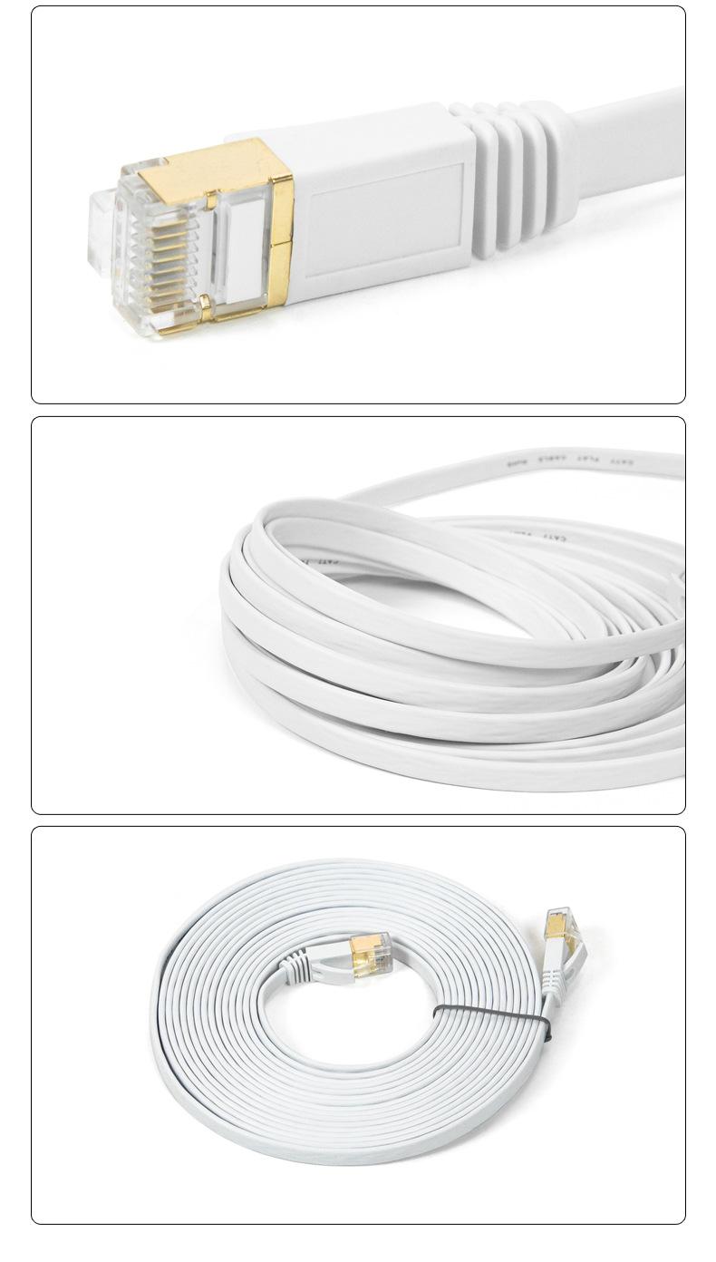 Cable de red de cabeza de cristal bañado en oro Jumper clase 7 plano de 10 gigabits Cable de red de cobre multifilar CAT7 blindado que se puede probar