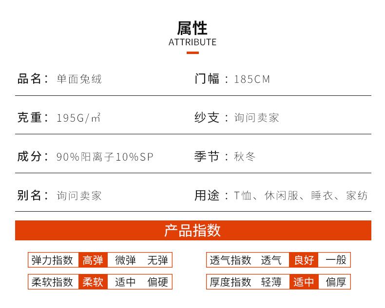 Tejido de terciopelo de conejo de punto de una sola cara, personalizado, para otoño e invierno, 195 g, teñido para sudaderas, ropa informal, tops, ropa para el hogar.