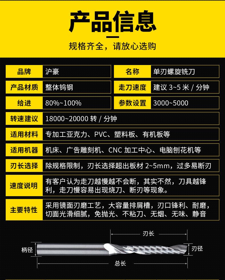Fresa Espiral de un Filo Huhao Acrílico 3.175/4/6mm Herramienta de Máquina de Grabado Pvc Broca de Acero Tungsteno Cuchilla de Corte