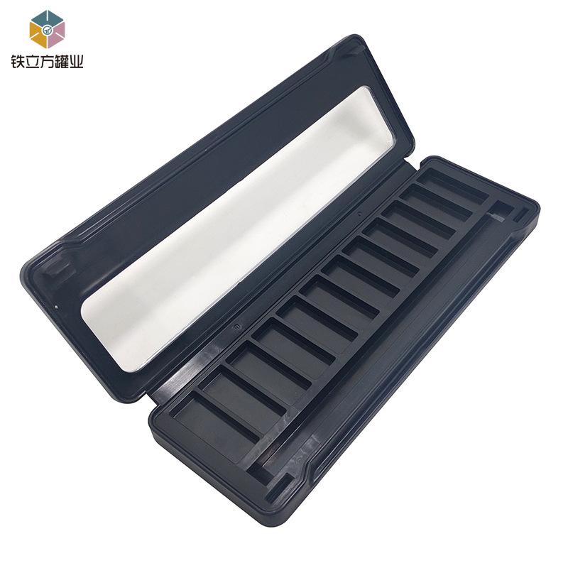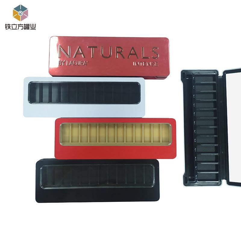 Caja de hojalata para sombra de ojos de 12 colores con ventana para posición de pincel, paleta de sombra de ojos cosmética de maquillaje de 12 rejillas