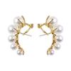 Pendientes de nicho retro francés de alta gama, diseño degradado, pendientes sencillos de moda con perlas, pendientes con personalidad europea y americana para mujer