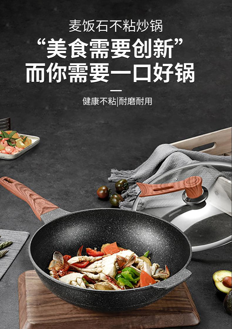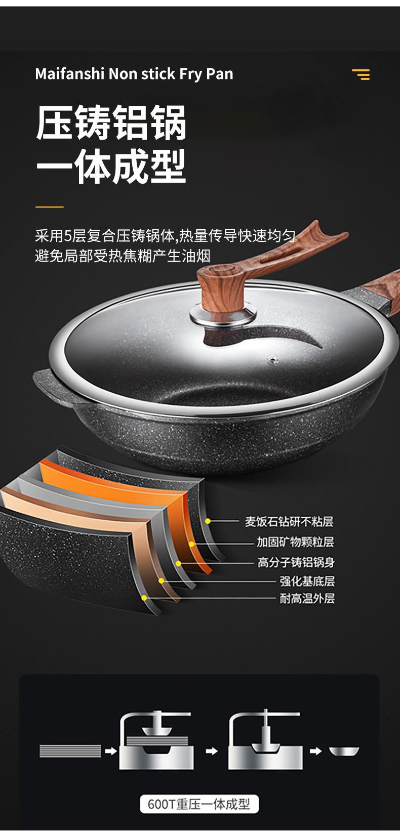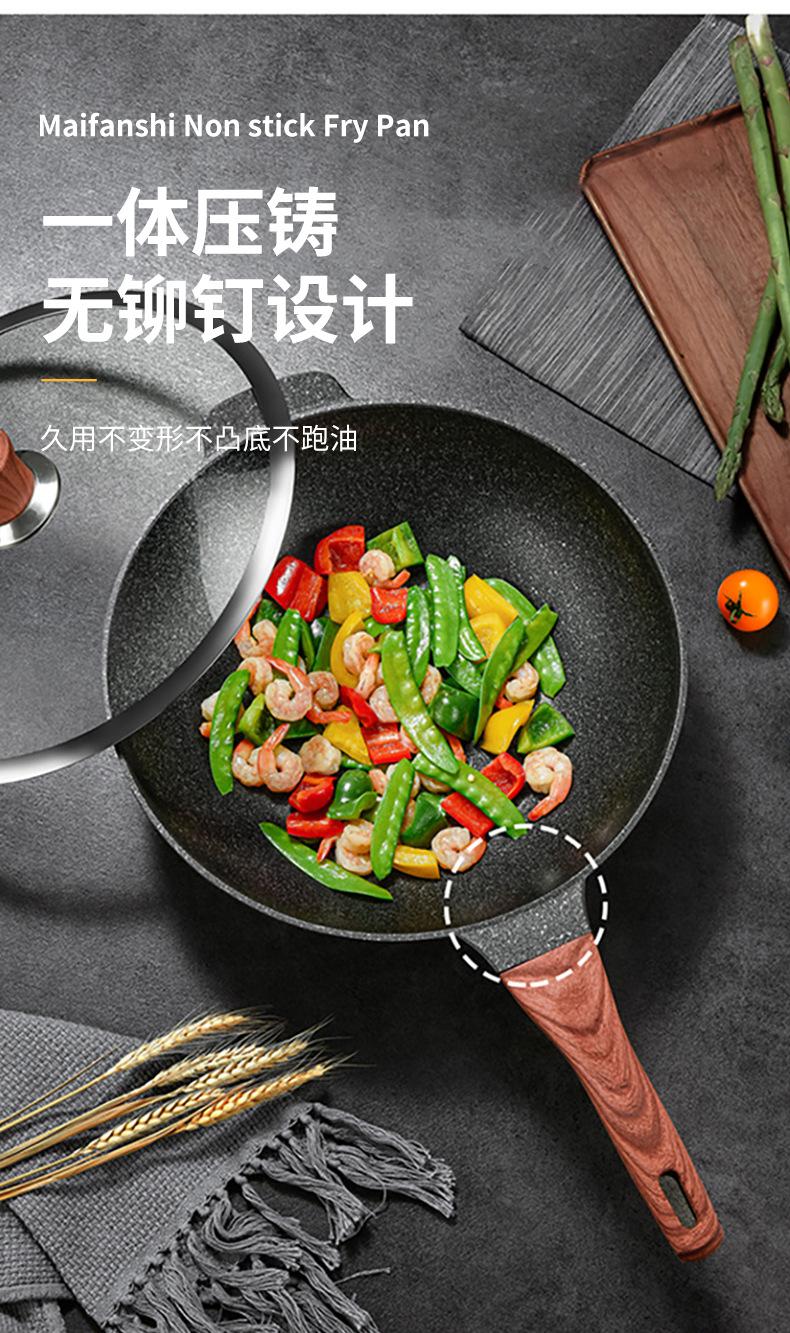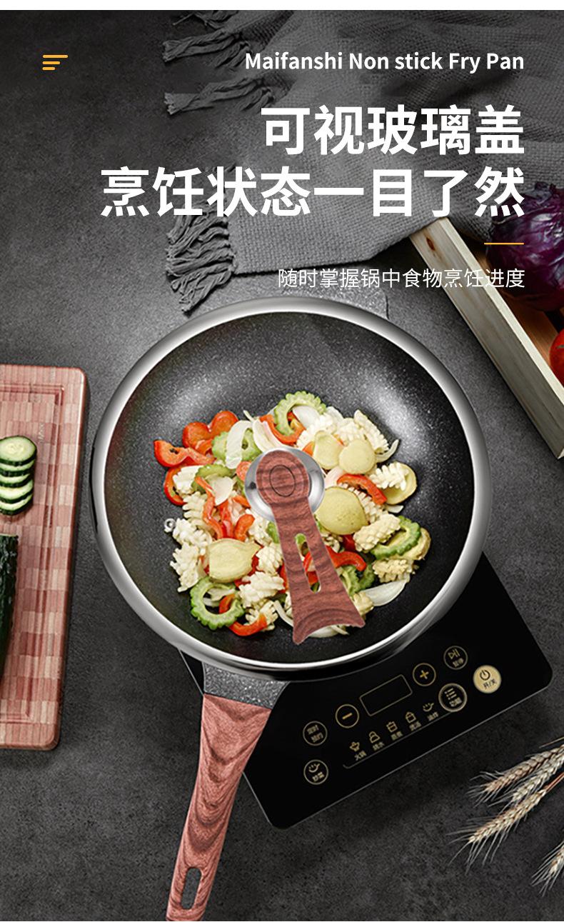 Sartén Antiadherente de Piedra Maifan, Wok de Fondo Plano, Apto para Cocinas de Inducción y Estufas de Gas, Olla para Cocinar con Tapa de Vidrio de Acero Inoxidable