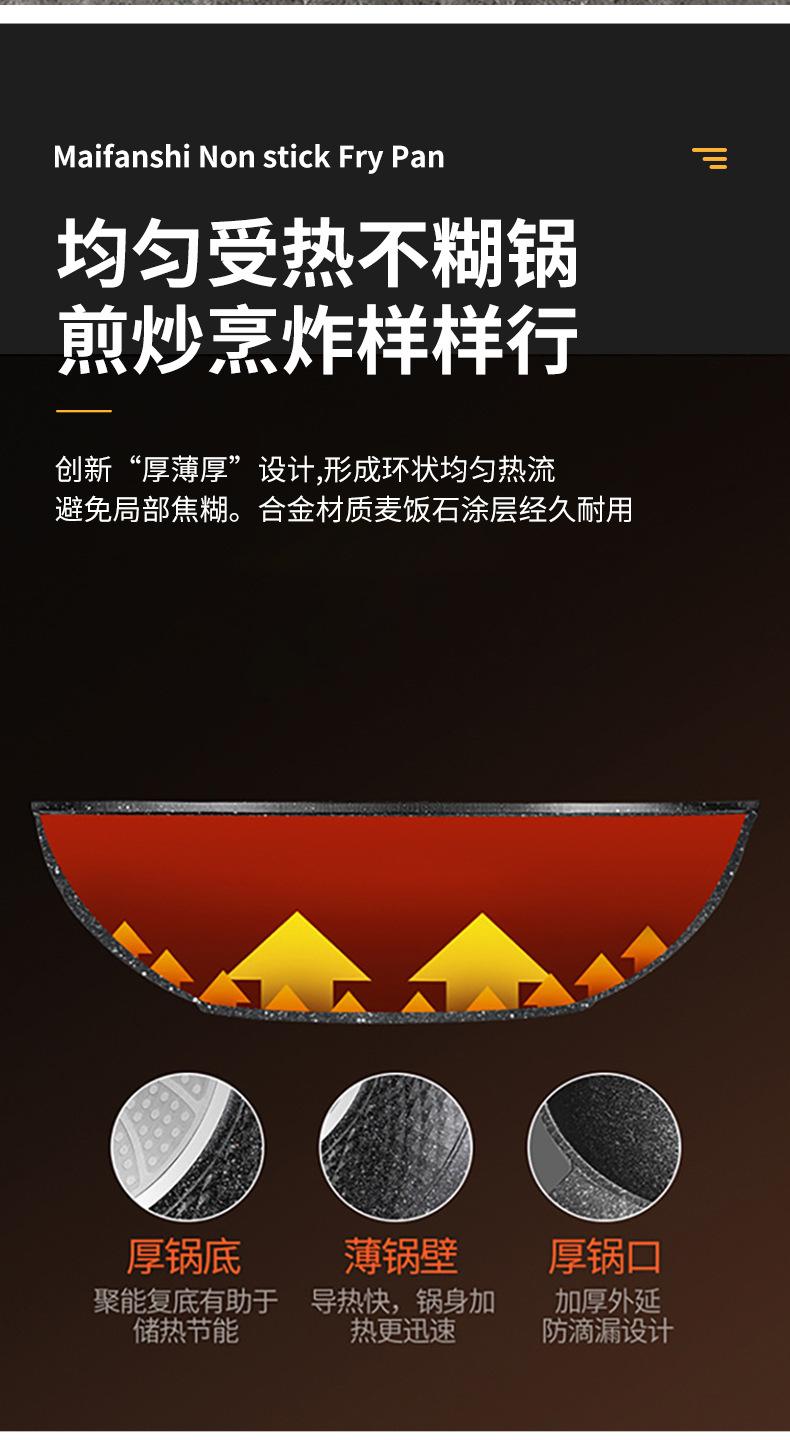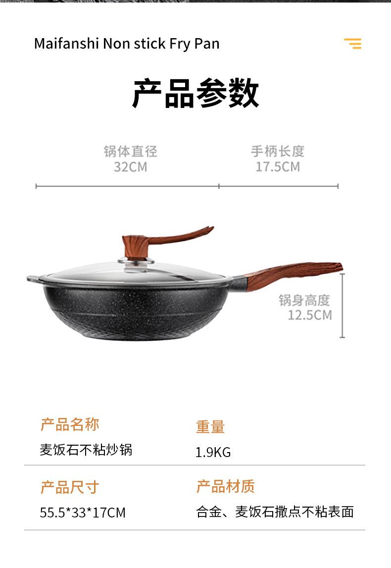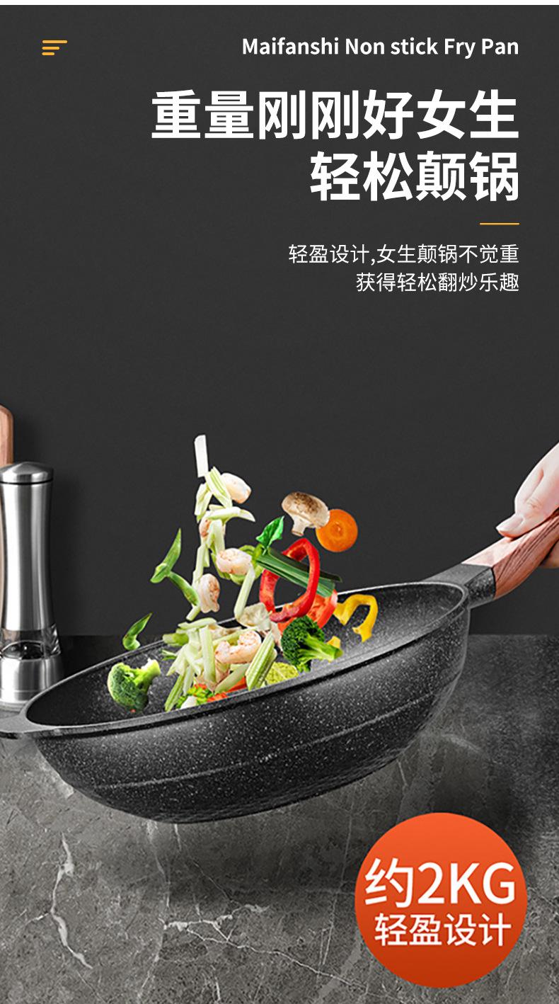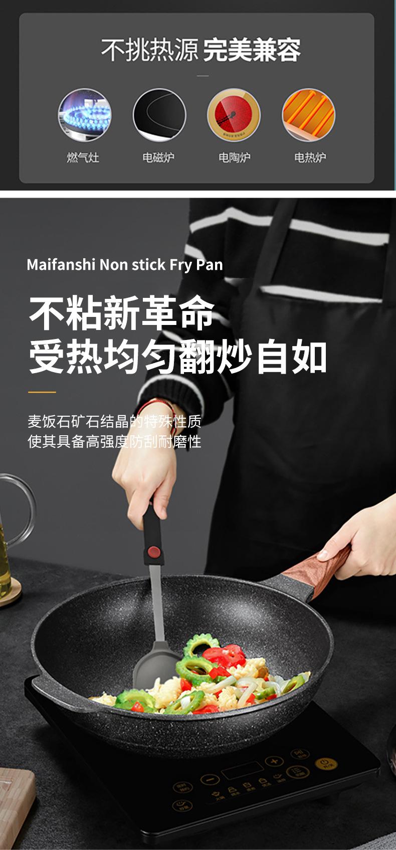 Sartén Antiadherente de Piedra Maifan, Wok de Fondo Plano, Apto para Cocinas de Inducción y Estufas de Gas, Olla para Cocinar con Tapa de Vidrio de Acero Inoxidable