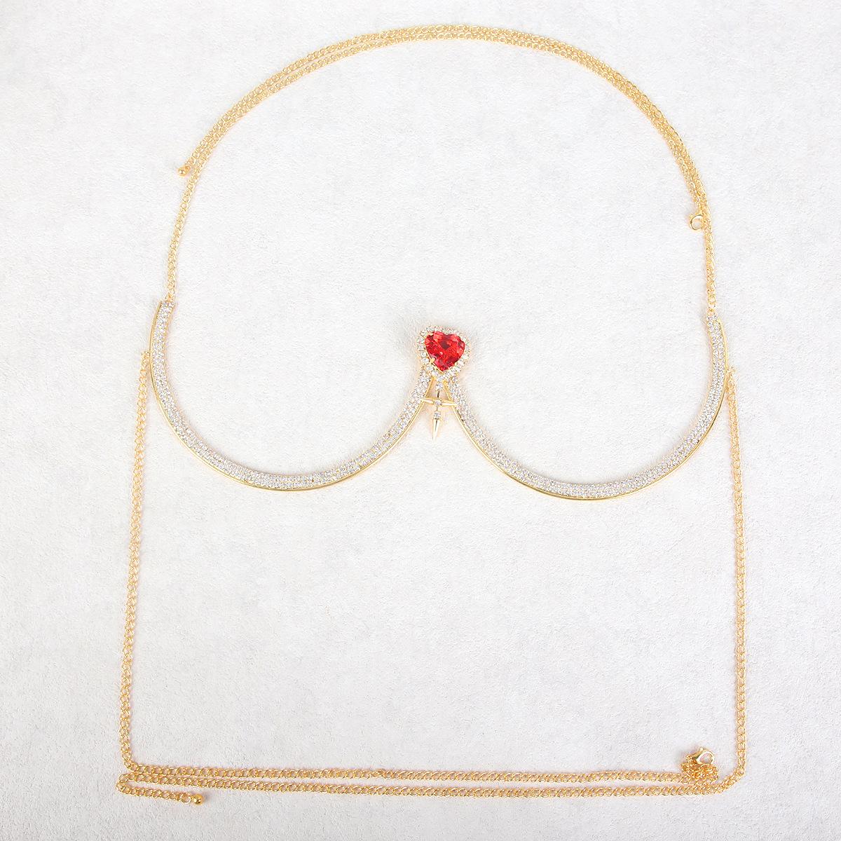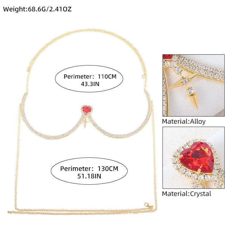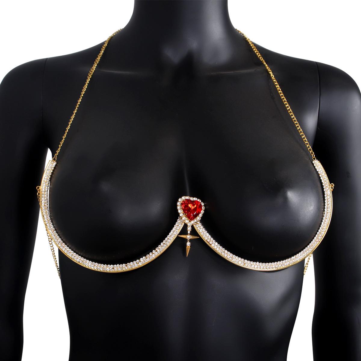 Nuevo soporte de amor transfronterizo para fiesta en discotecas europeas y americanas, bikini sexy con diamantes de imitación, cadena para el pecho, accesorios para mujer