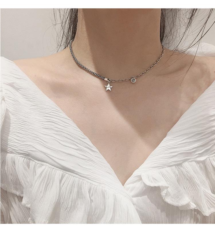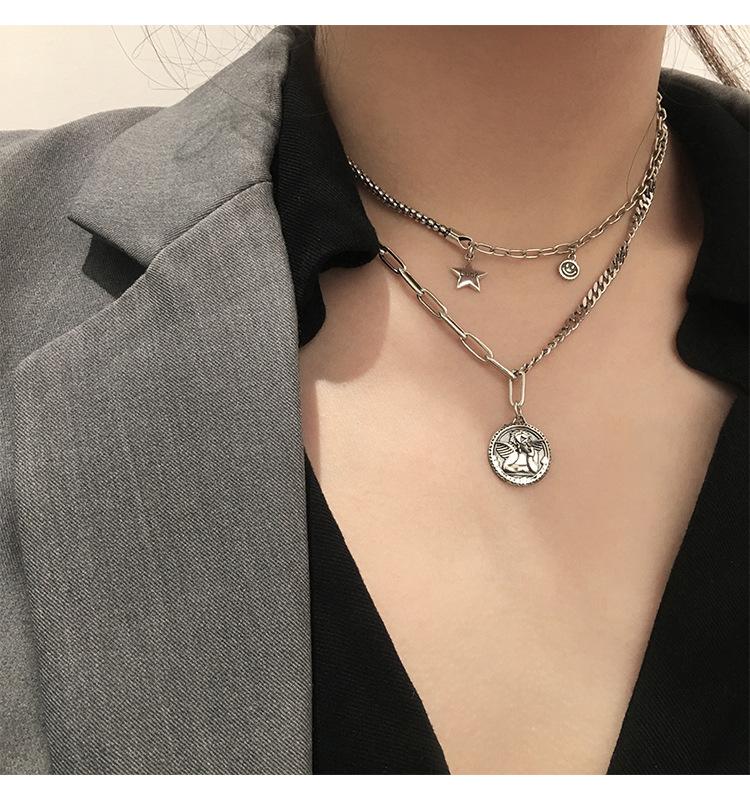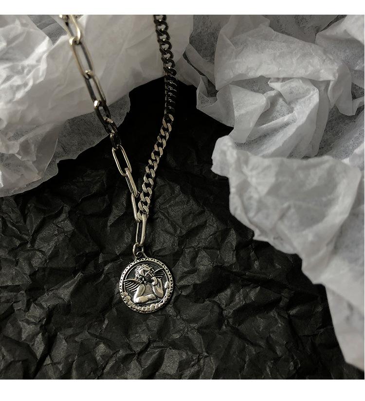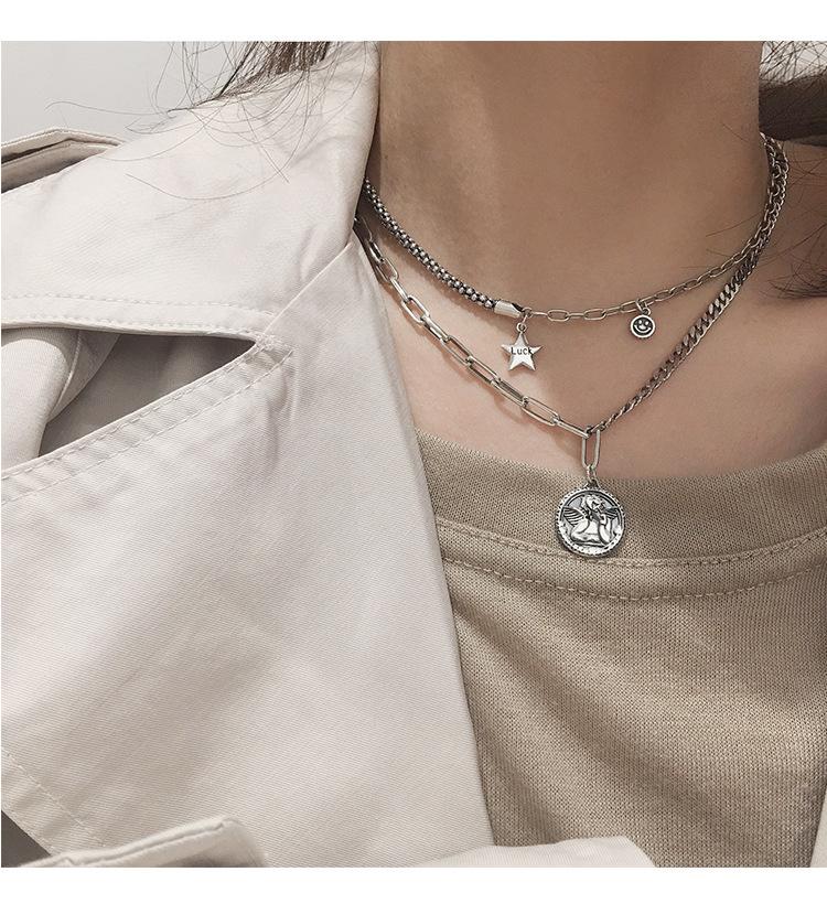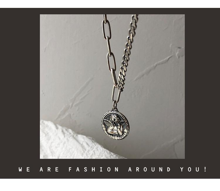 Plata Esterlina Moneda Ángel Coreana Dongdaemun Vintage Redonda Marca Collar Mujeres ins Moda Hip Hop Cadena Suéter