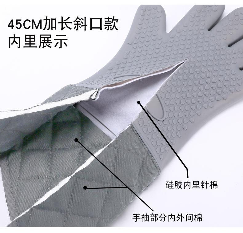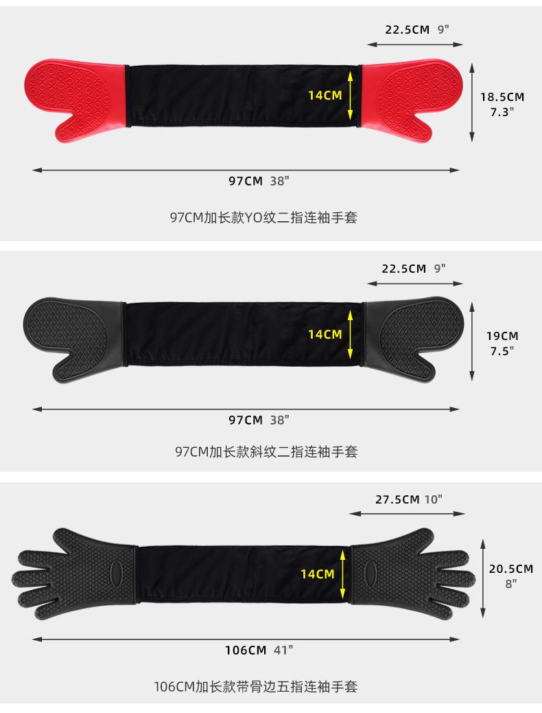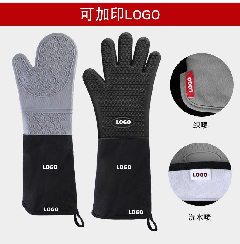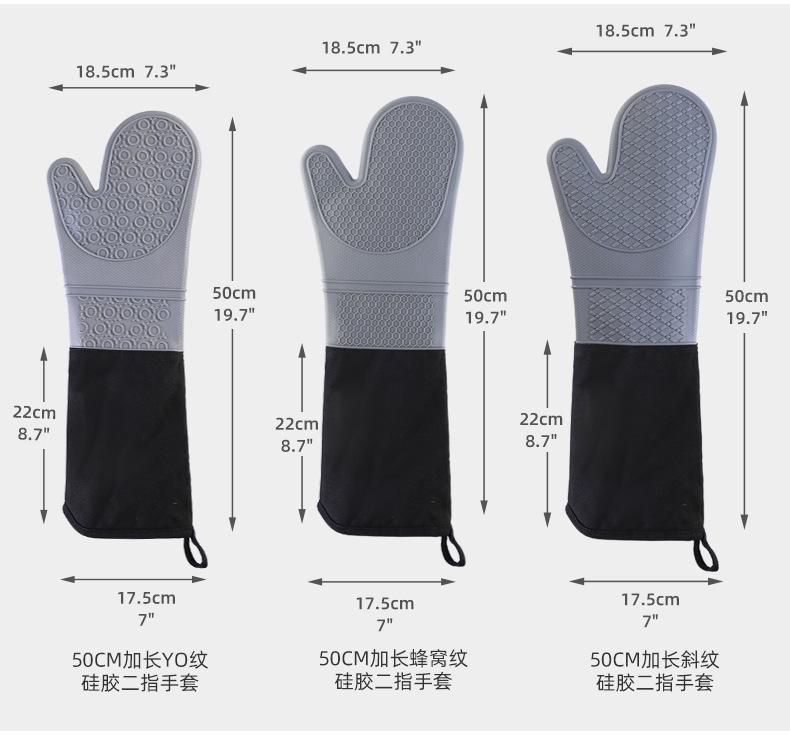 Nombre: Guantes para hornear, guantes de algodón extendidos, guantes gruesos de silicona para aislamiento térmico de dos dedos para cocina doméstica, horno, microondas
