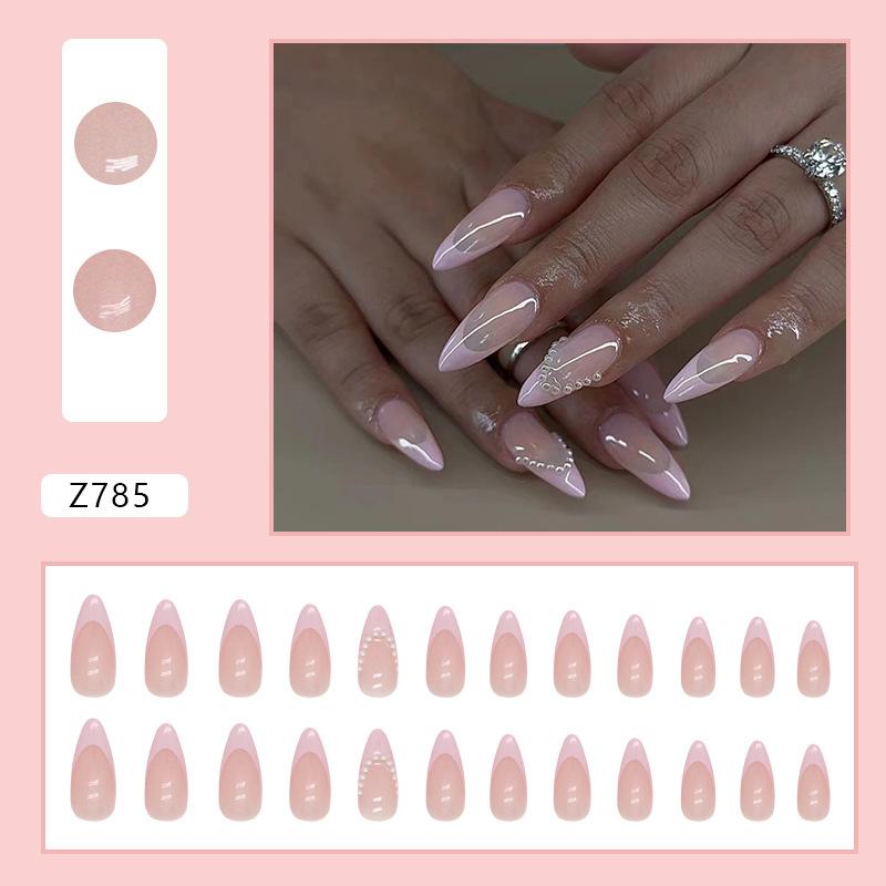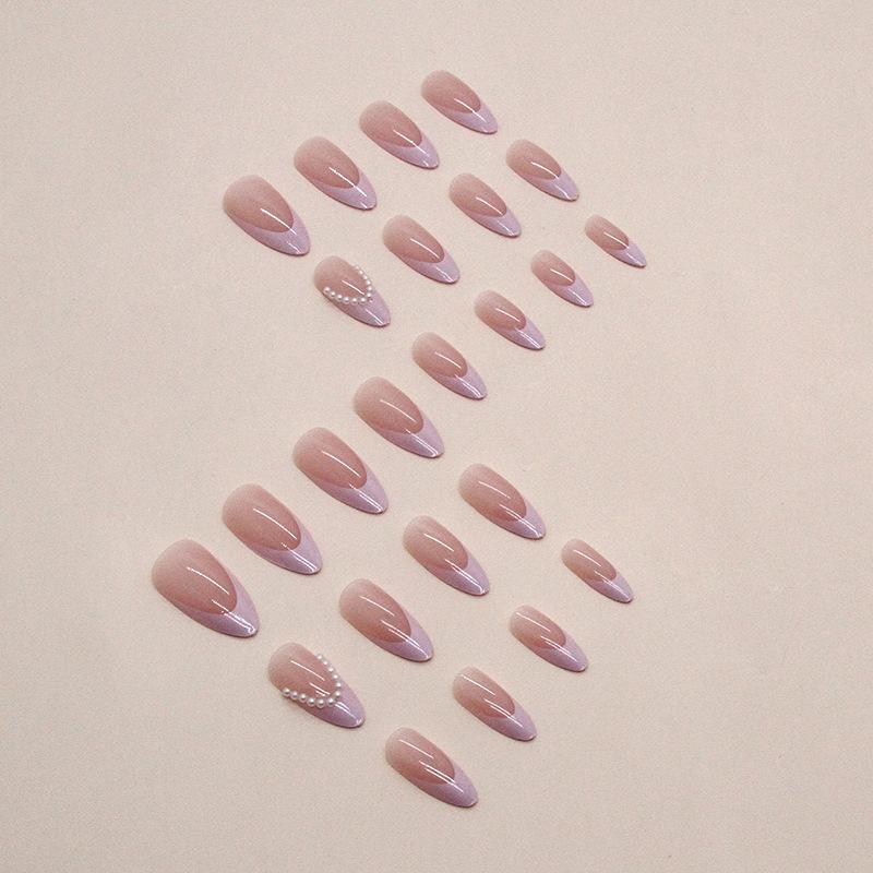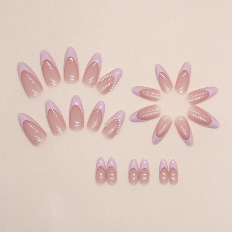 Uñas almendradas rosas francesas perla suave y dulce para niñas estilo europeo y americano uñas postizas para usar uñas