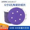 Papel de lija flocado de 6 pulgadas y 150 mm con 6 agujeros para pulido en seco, papel de lija morado para cerámica, hoja cepillada para pulido, papel de lija de terciopelo autoadhesivo con respaldo de disco.