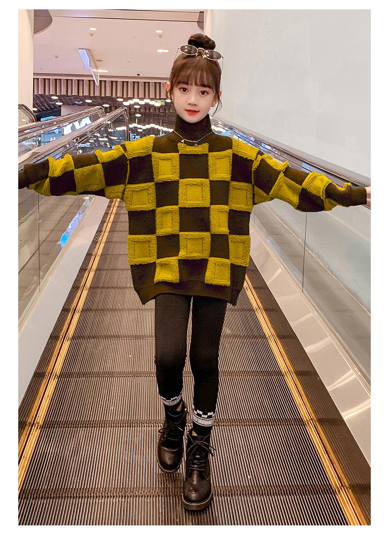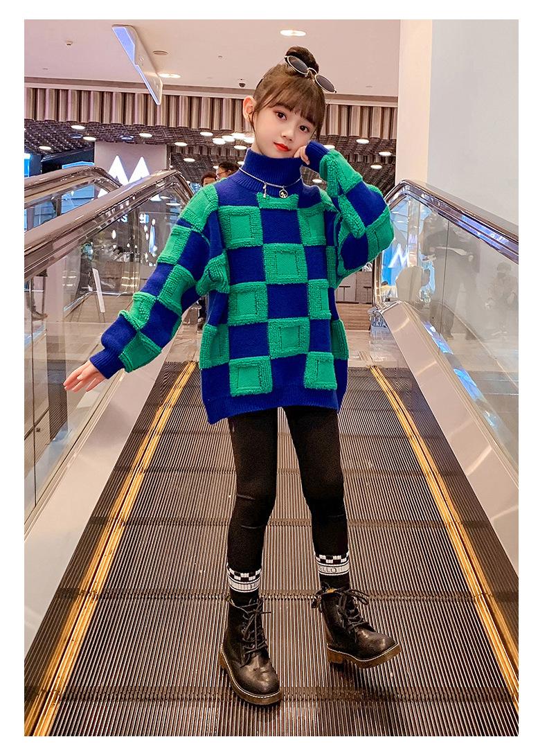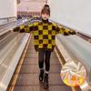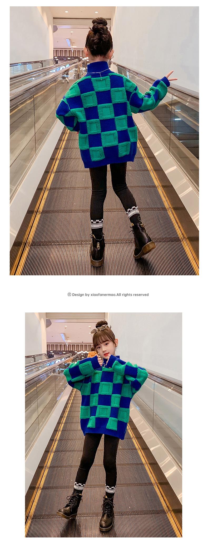 Suéter de estilo occidental para niñas, otoño/invierno 2024, nuevo suéter grueso con forro polar de estilo coreano para niñas de talla mediana y grande, cálido, de moda invernal.
