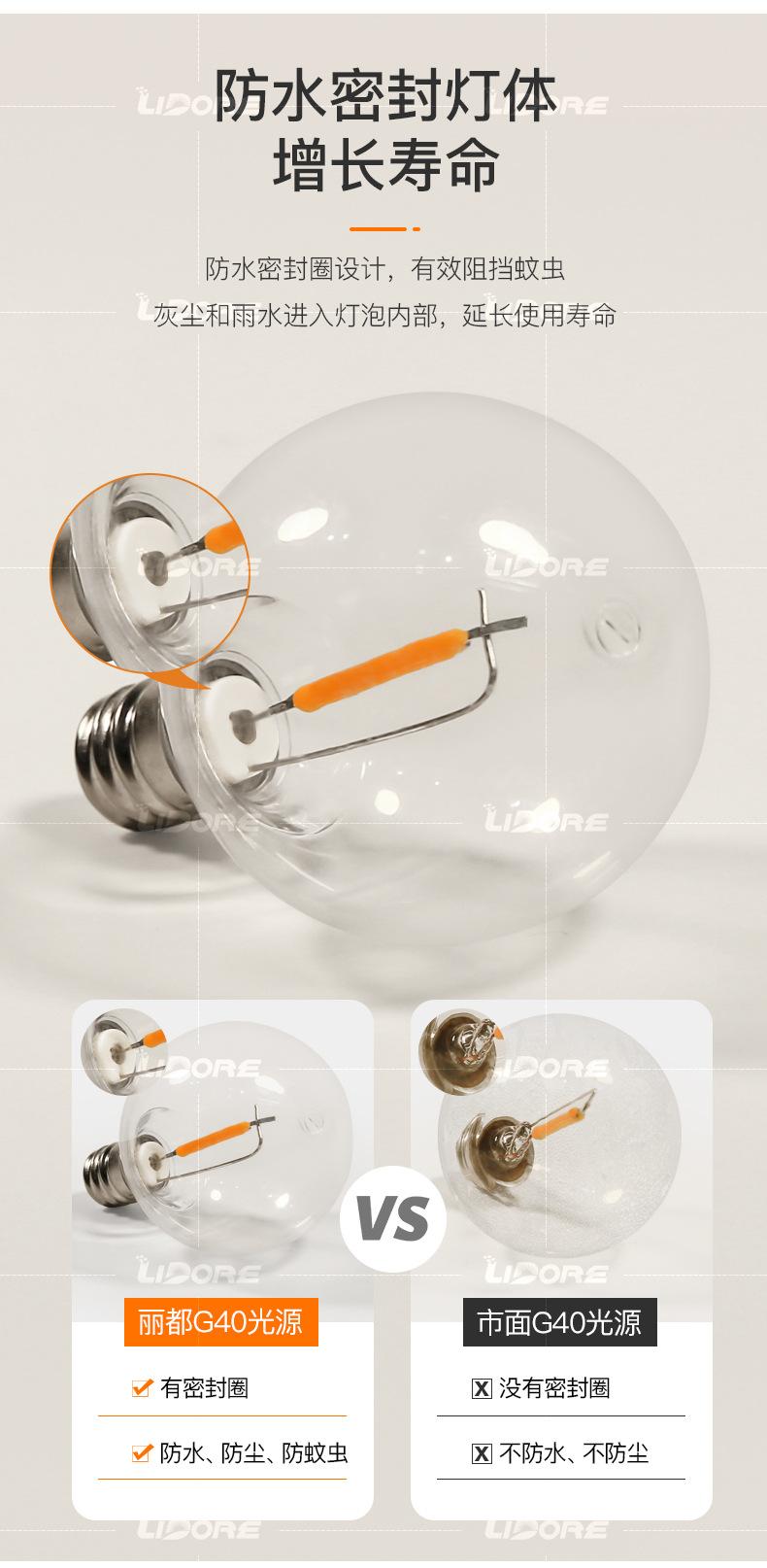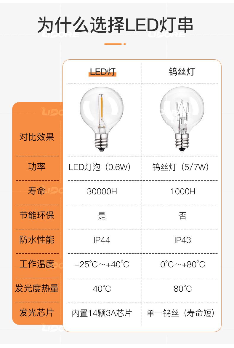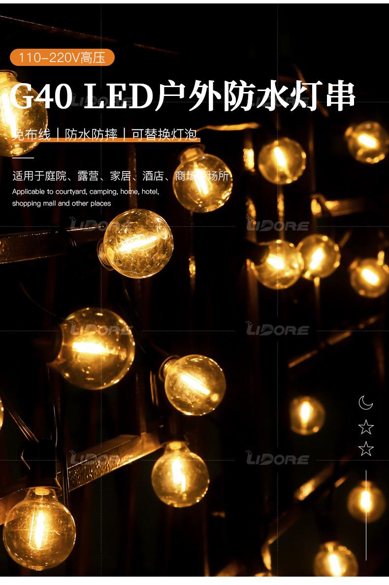 Suministro Transfronterizo G40 Imitación Tungsteno Cadena de Luces LED 25 Luces 100 Luces Decoración de Navidad y Halloween Atmósfera Cadena de Luces Colorida