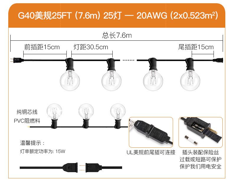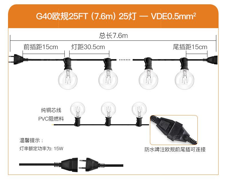 LED 7.6 meters 25 lights +2 bubble 25FT 220V European G40LED string CE certification (domestic use please take this specification)