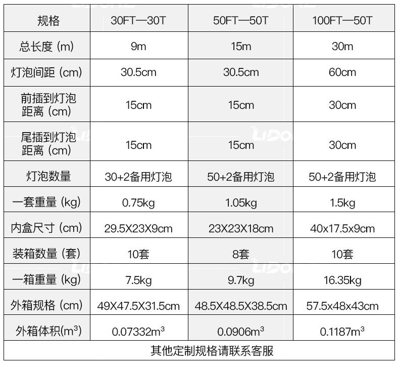 LED 3 M 10 lights +1 bubble 10FT, LED 7.6 meters 25 lights +2 bubble 25FT, LED 9 m 30 lamp +2 bubble 30FT, LED...