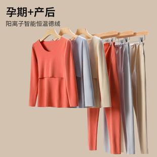 Conjunto de ropa de otoño para mujeres embarazadas y pantalones largos Ropa interior térmica de terciopelo alemán otoño e invierno Ropa de lactancia para la cuarentena posparto Pijama de lactancia posparto de terciopelo fino