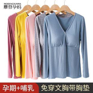 Tops de lactancia de manga larga para primavera y otoño, ropa de lactancia para mujeres embarazadas, tops para amamantar, ropa para el hogar, ropa de confinamiento, pijamas de lactancia para otoño e invierno