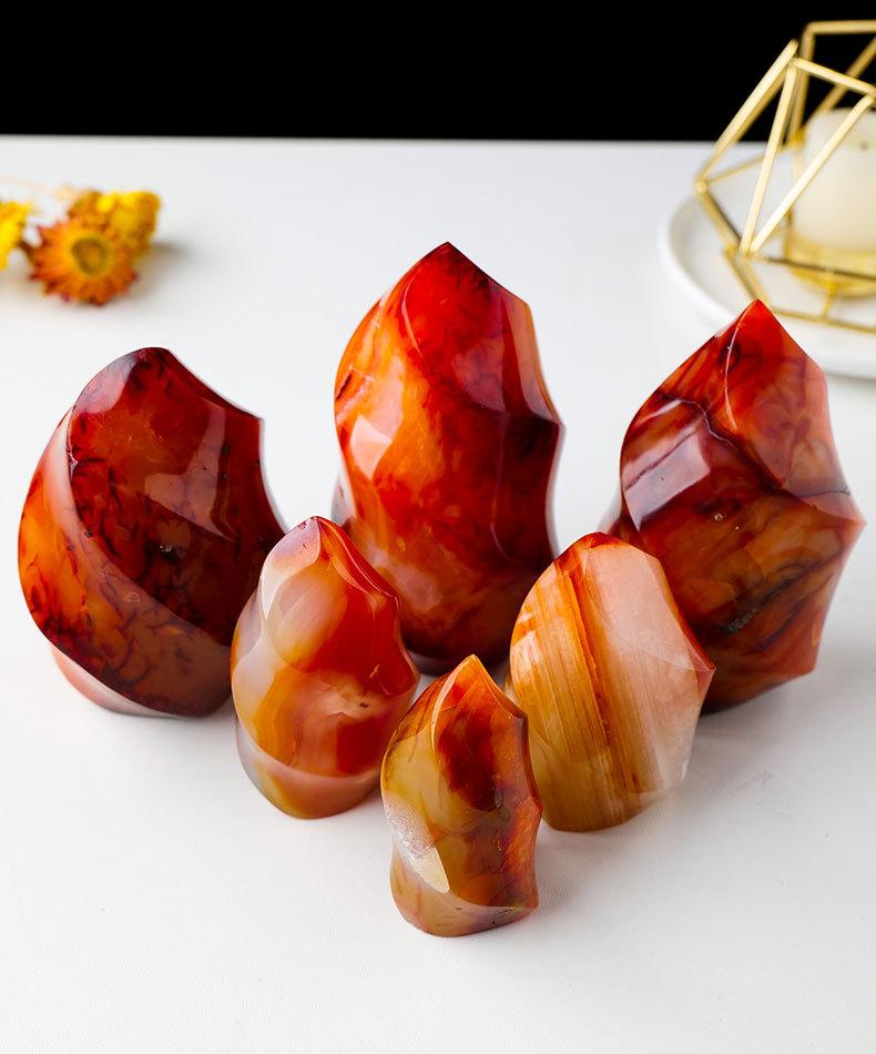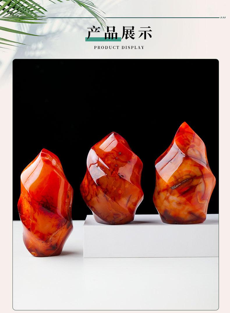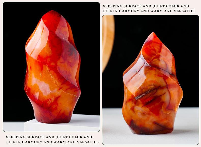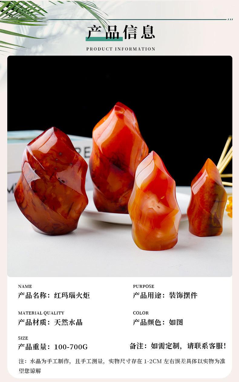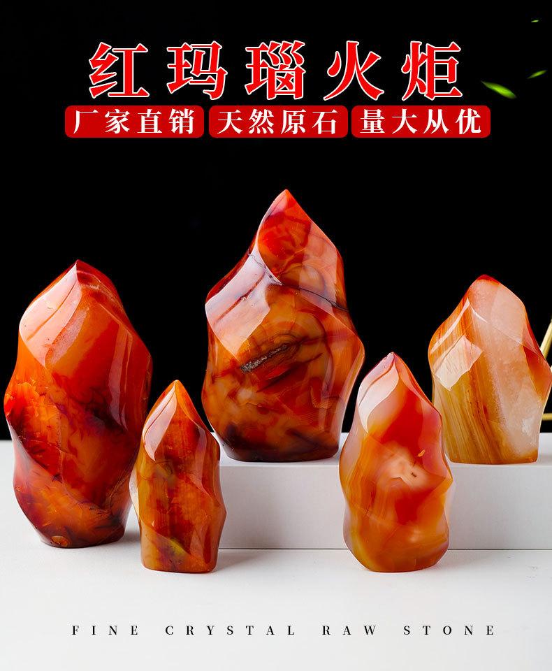 Antorcha de ágata roja natural tallada, espécimen de mineral de piedra de ágata, adornos decorativos para el hogar de Halloween europeos y americanos.
