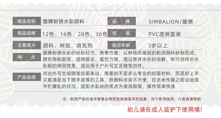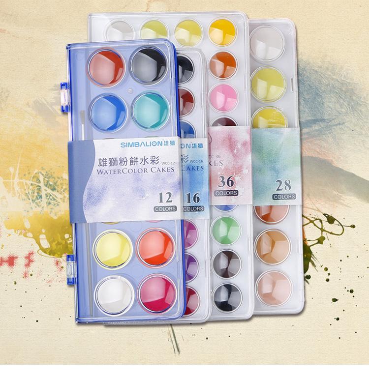 Lion 12 Colores 28 Colores 36 Colores Paleta de Polvo de Acuarela Sólida Transparente Set de Pintura para Niños Pintura de Acuarela