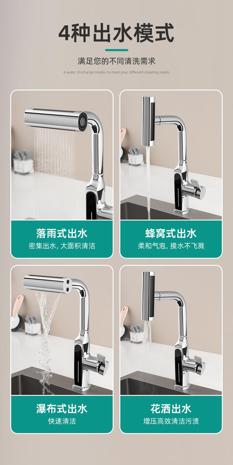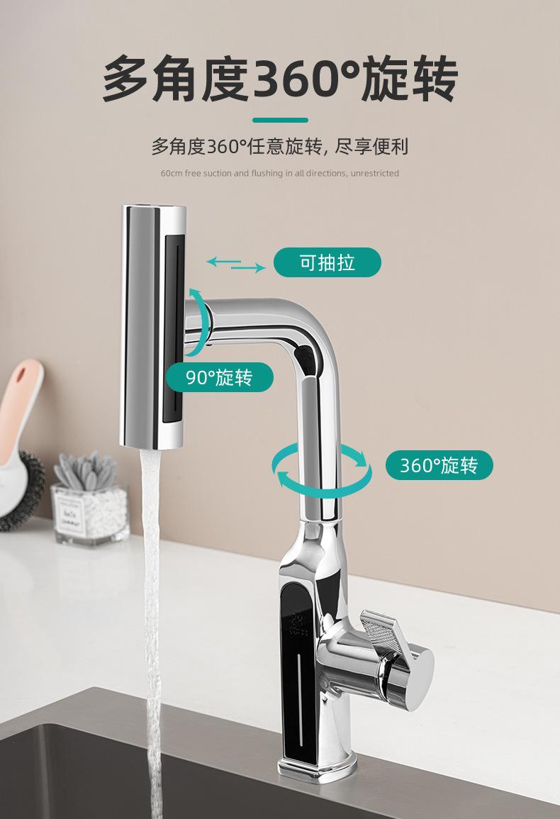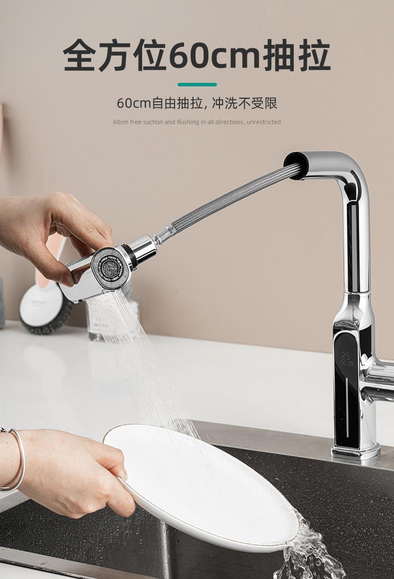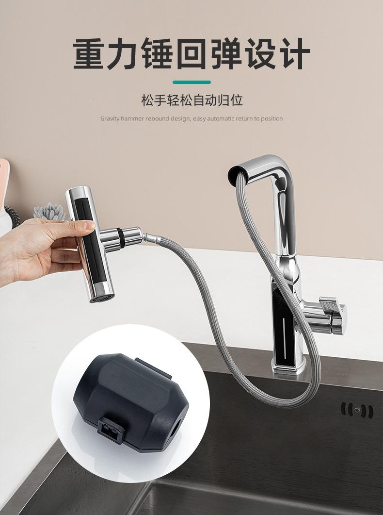 Grifo de Cocina lavabo de verduras a prueba de salpicaduras agua cobre caliente y fría extraíble extensión telescópica giratorio fregadero