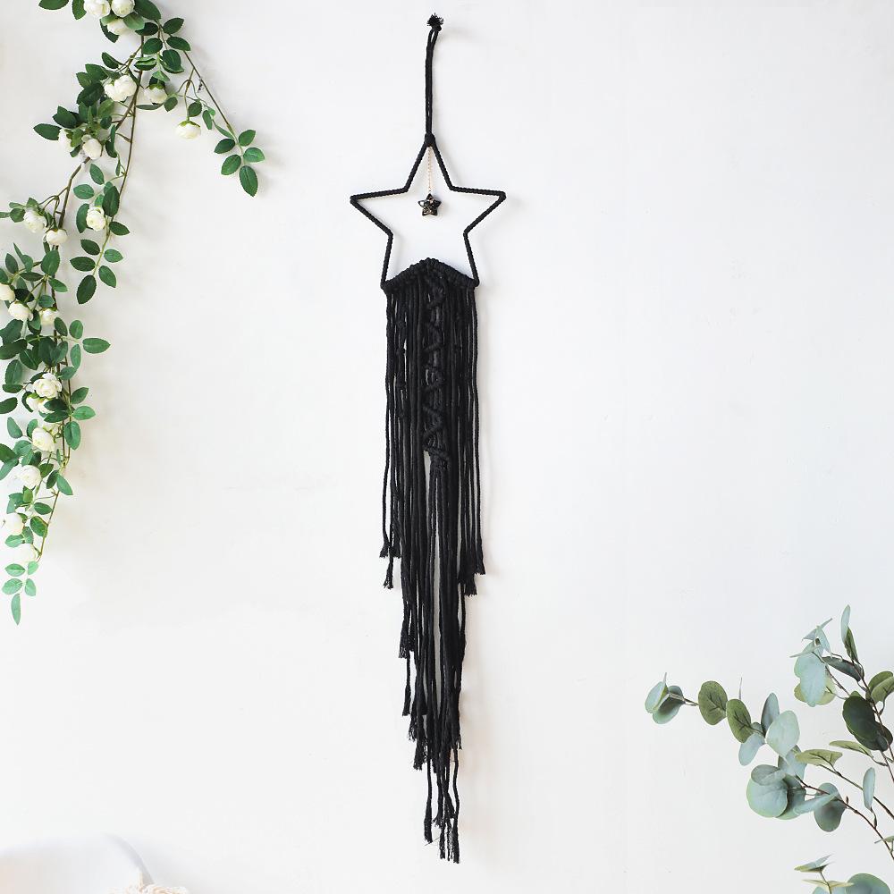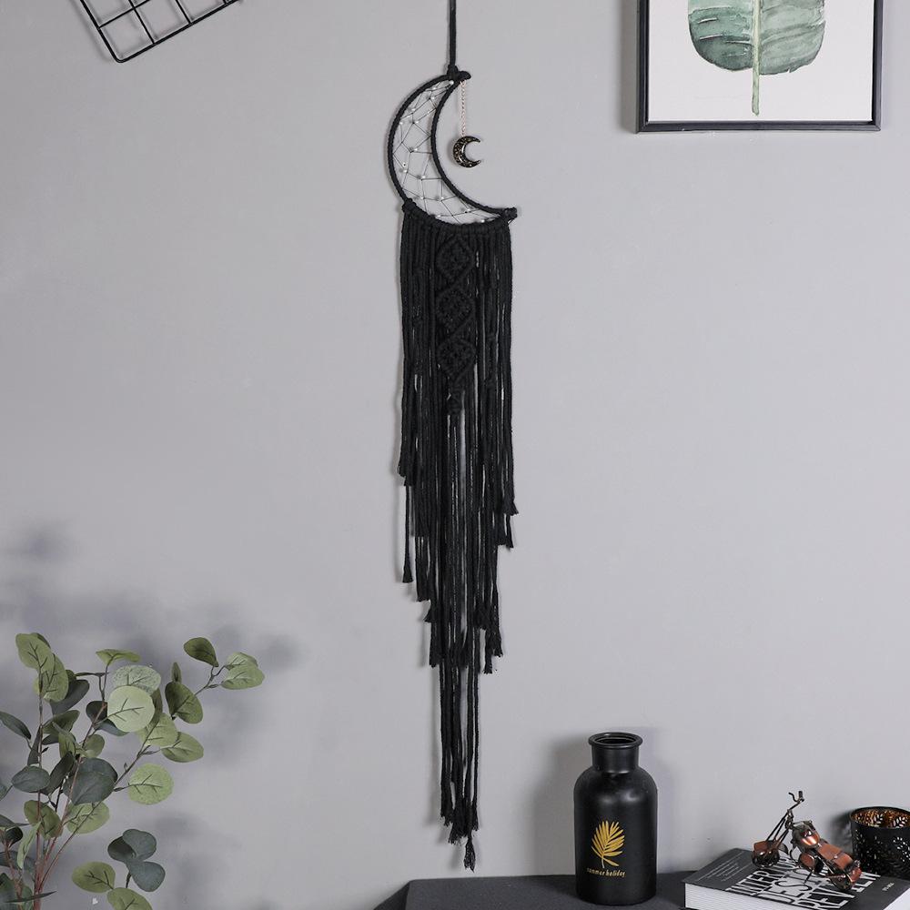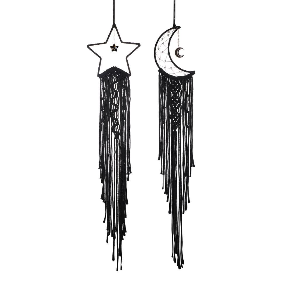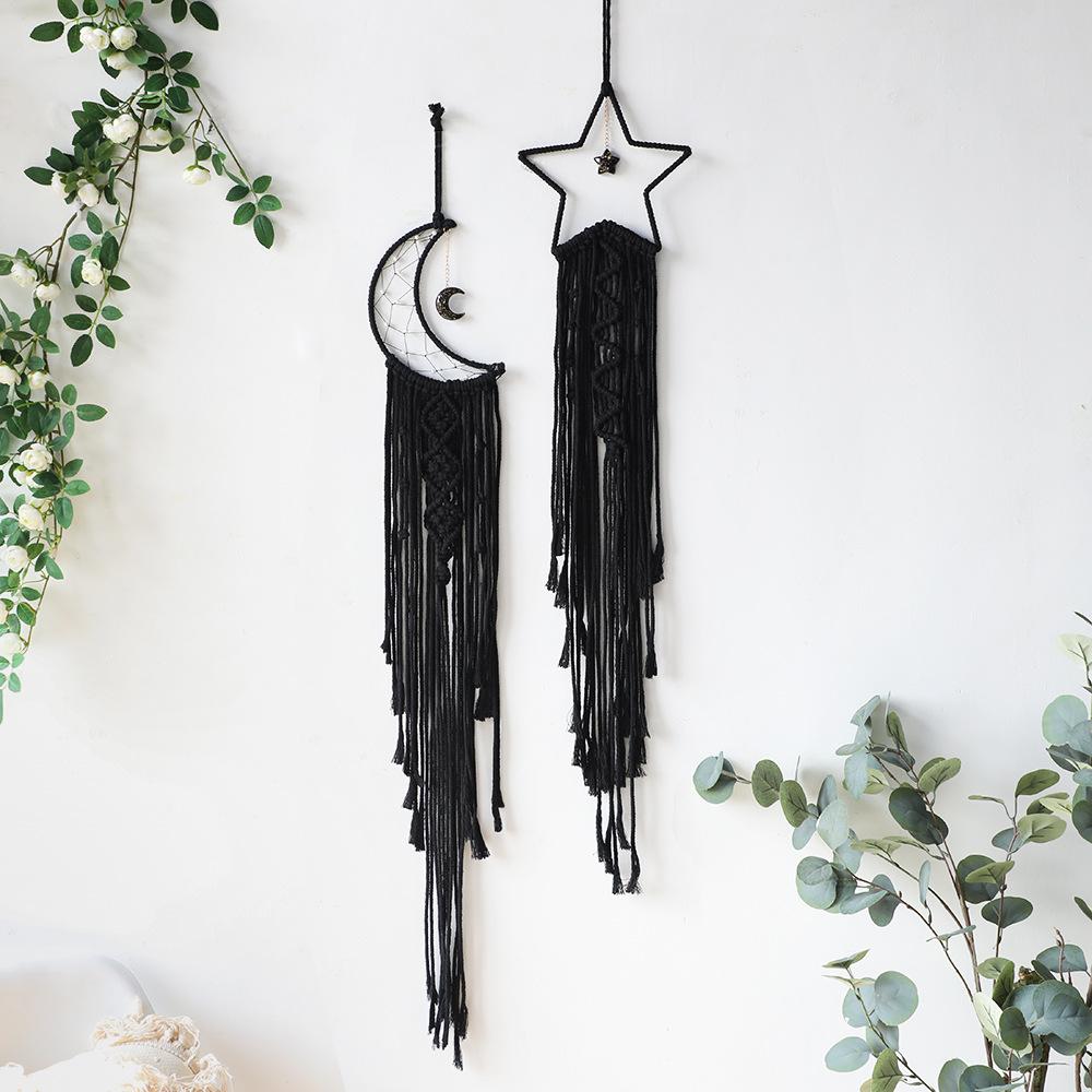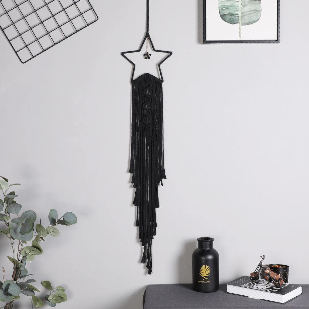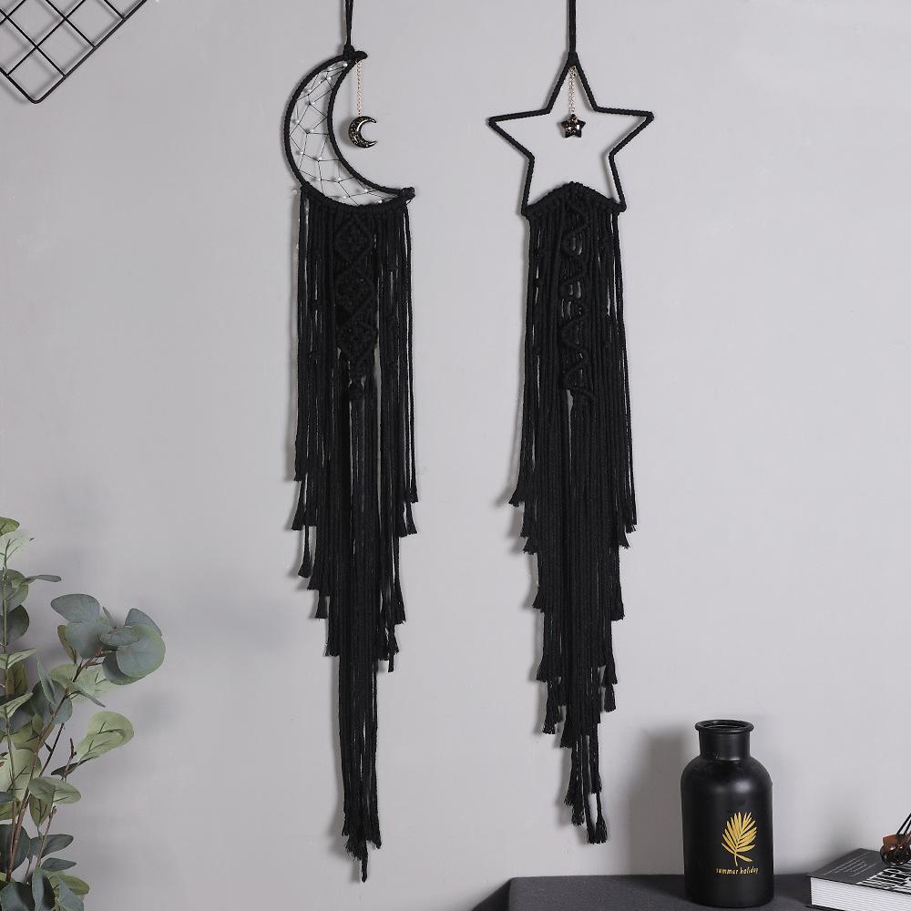Tapiz de Algodón Tejido a Mano Estilo Ins Estrella Oscura y Luna Sala de Estar Colgante de Pared Decoración Escandinava para Dormitorio Decoración de Pared