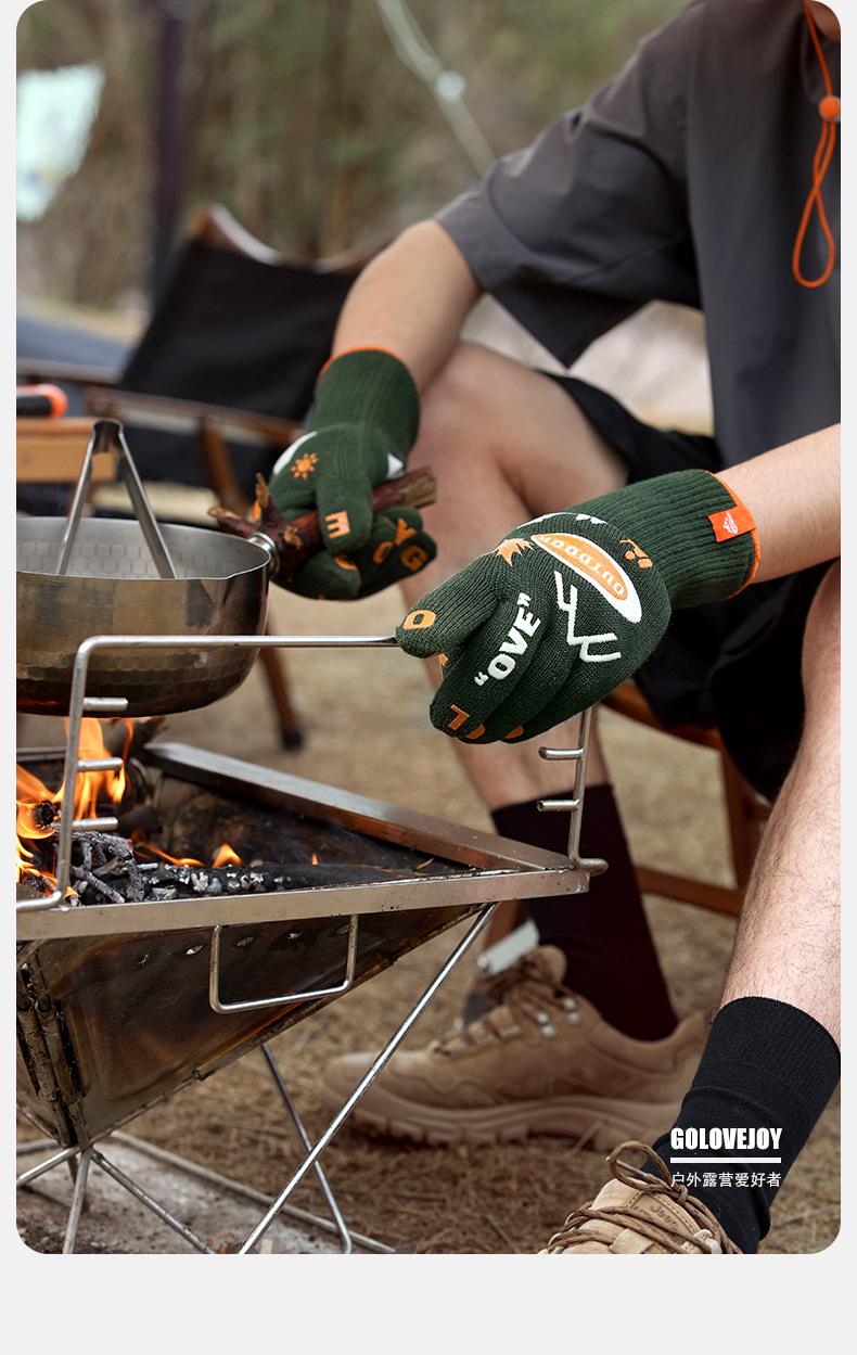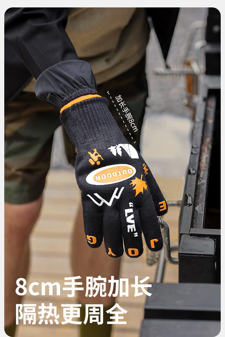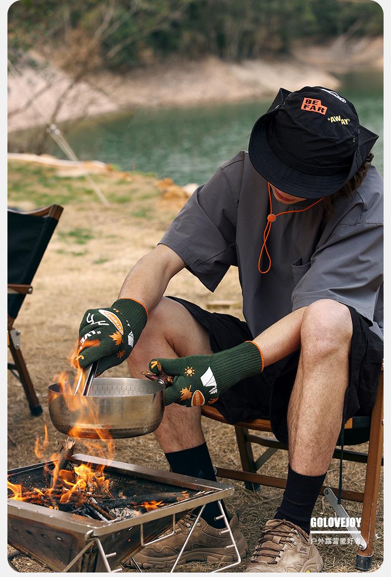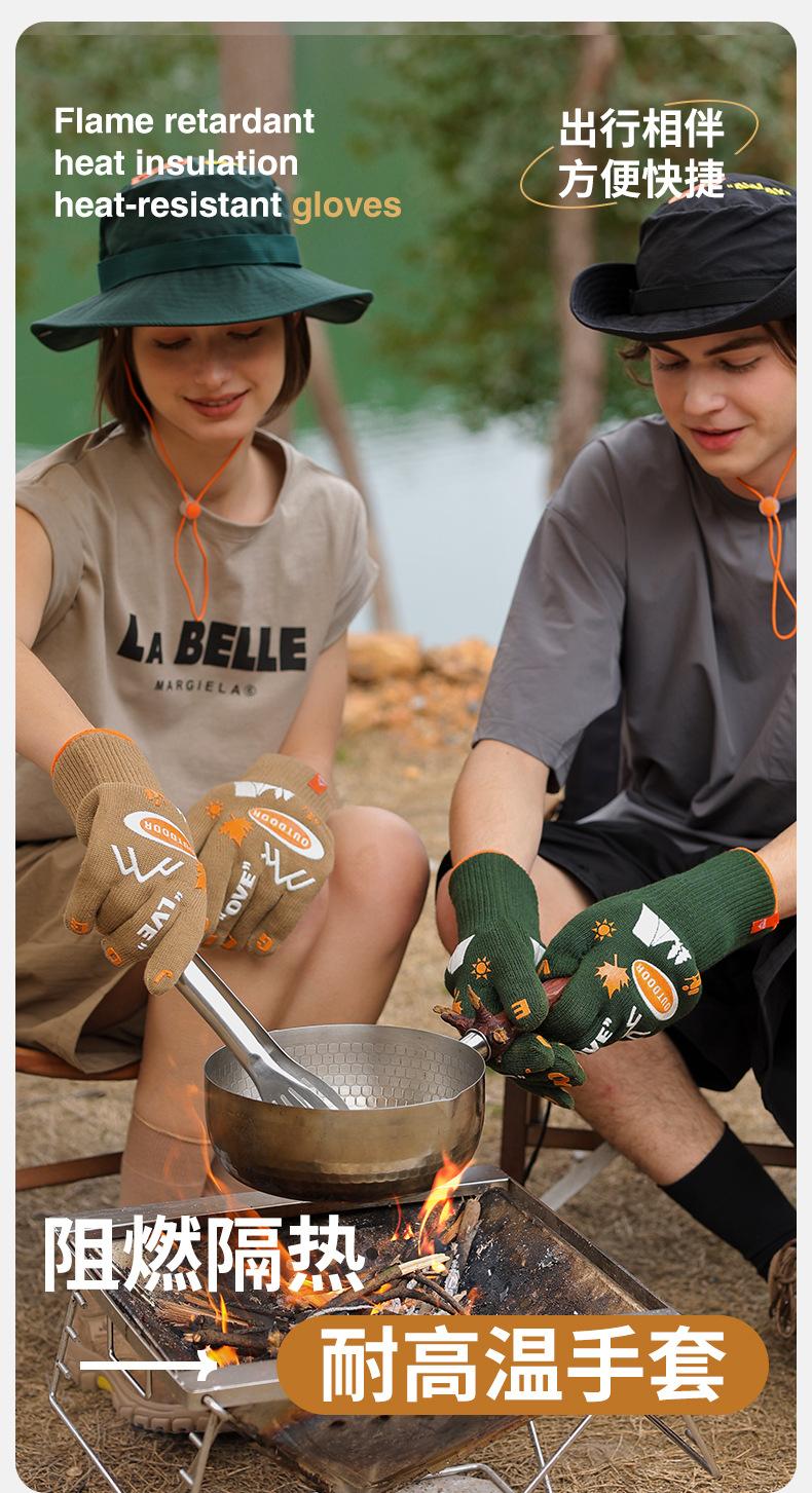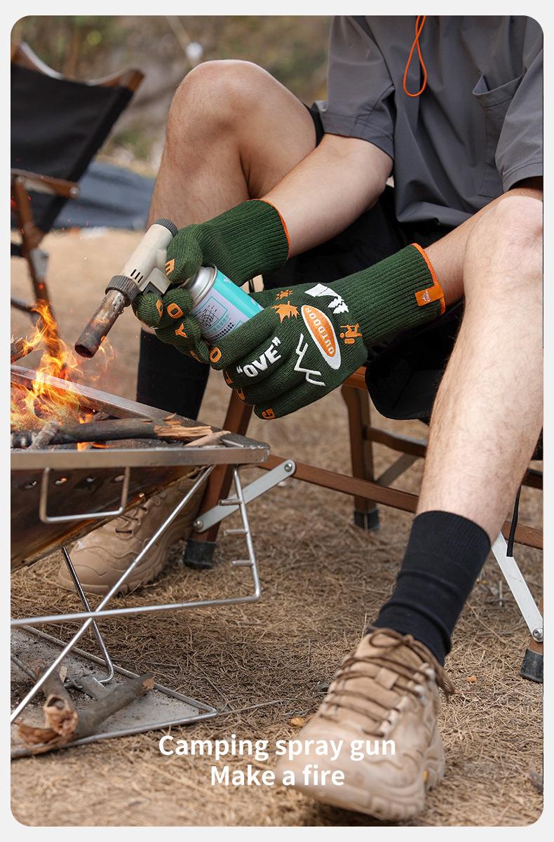 Guantes de camping al aire libre, antideslizantes, resistentes al desgaste, para barbacoa, ignífugos, antiescaldaduras, con aislamiento térmico de doble cara, FG03