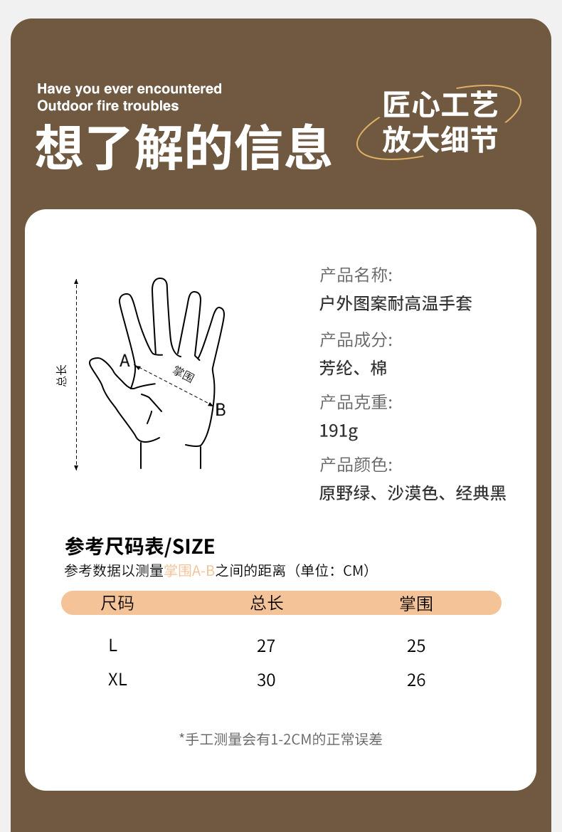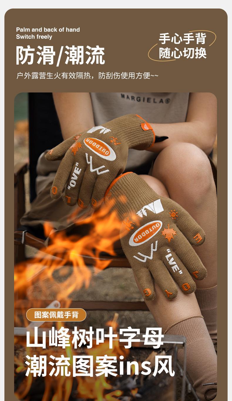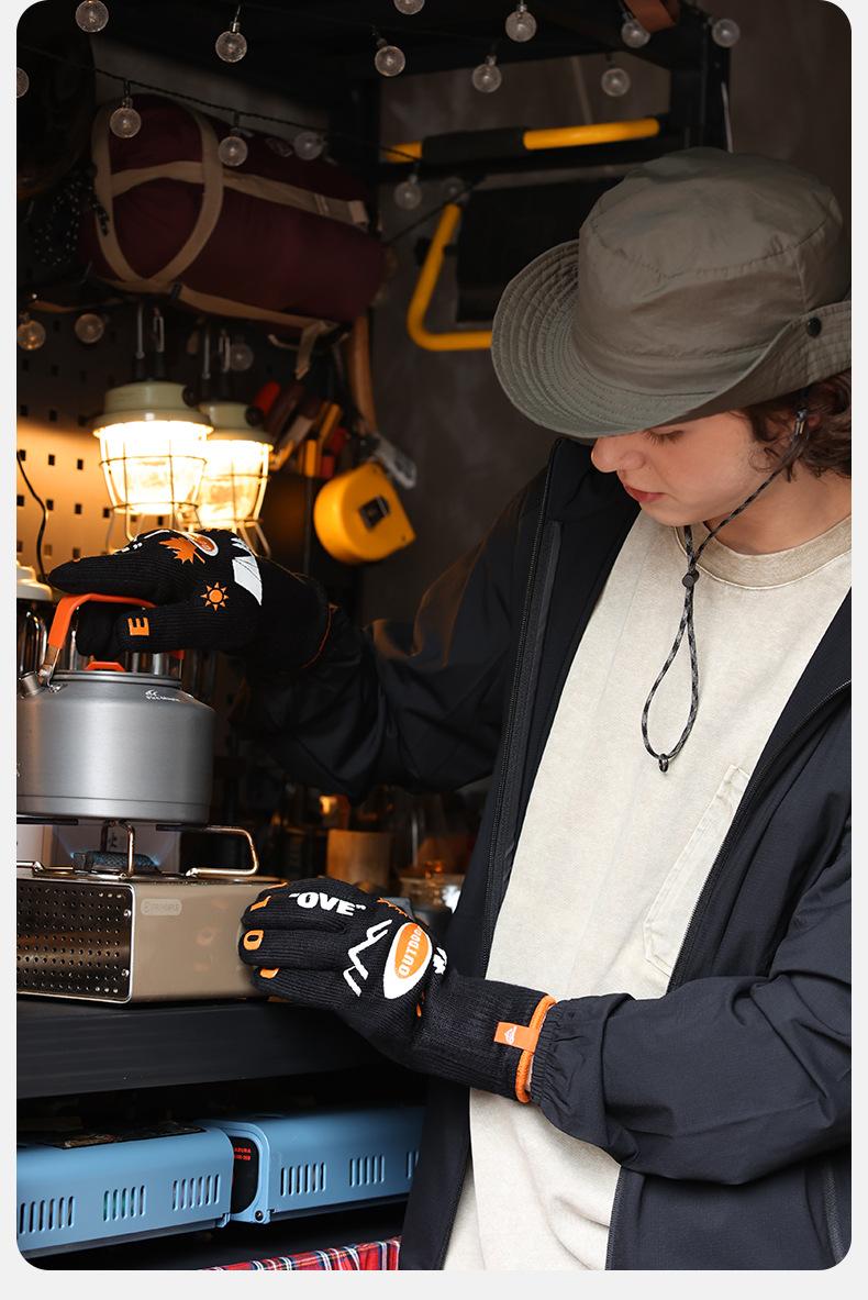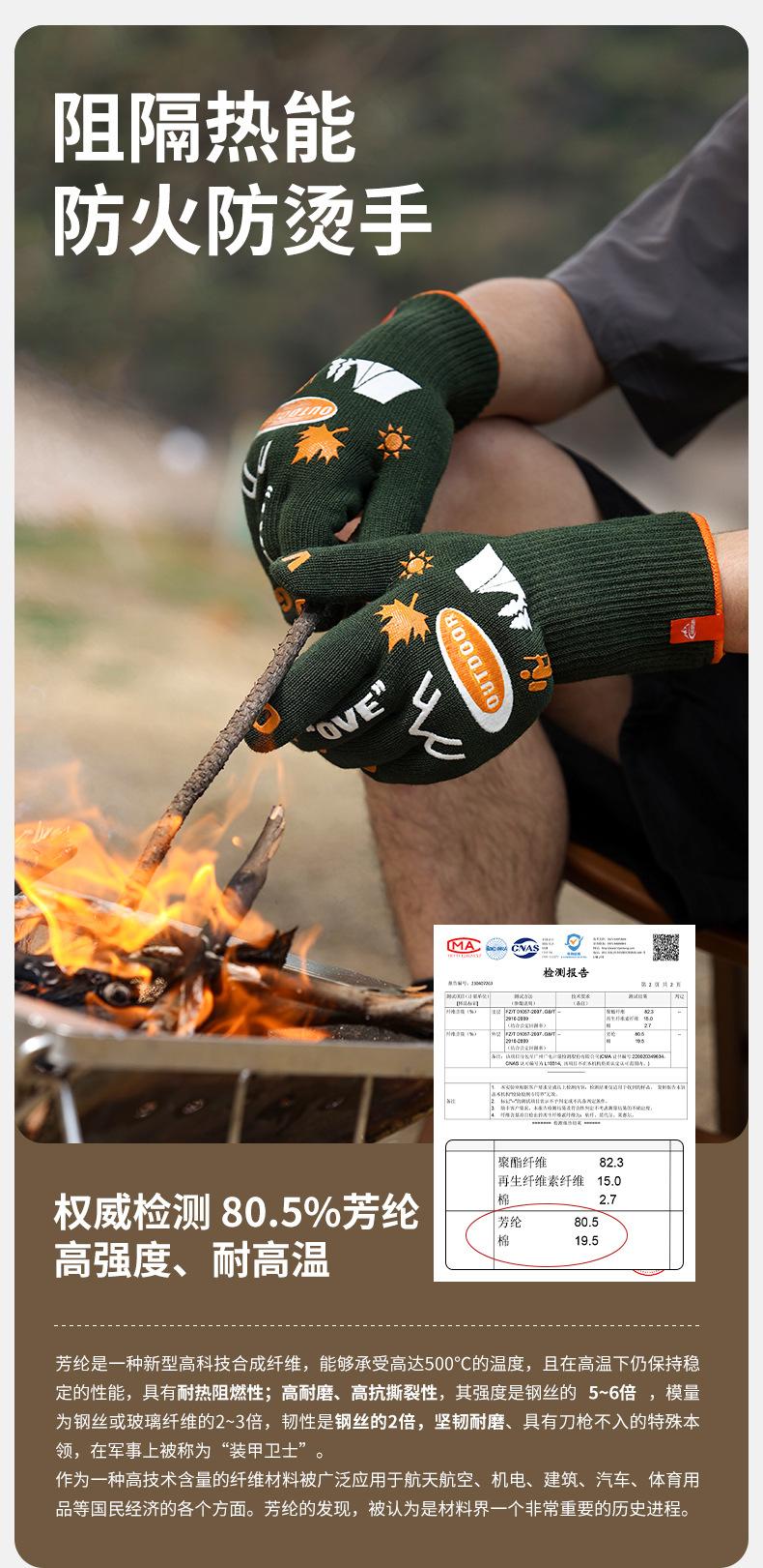 Guantes de camping al aire libre, antideslizantes, resistentes al desgaste, para barbacoa, ignífugos, antiescaldaduras, con aislamiento térmico de doble cara, FG03