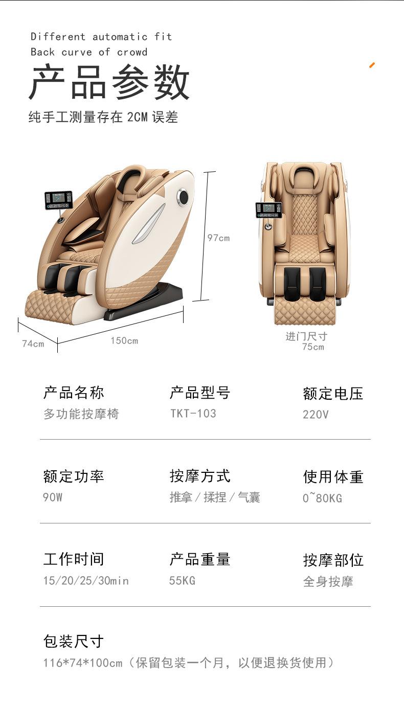 Sillón de Masaje Tkt Home Comercial Cuerpo Completo Cabina Espacial Gravedad Cero Sofá de Masaje Motor Eléctrico Núcleo Fisioterapia