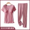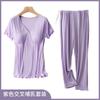 Traje de pantalón corto de manga corta para maternidad Pijama para mujeres embarazadas Verano Delgado Ropa para el hogar posparto Ropa para amamantar