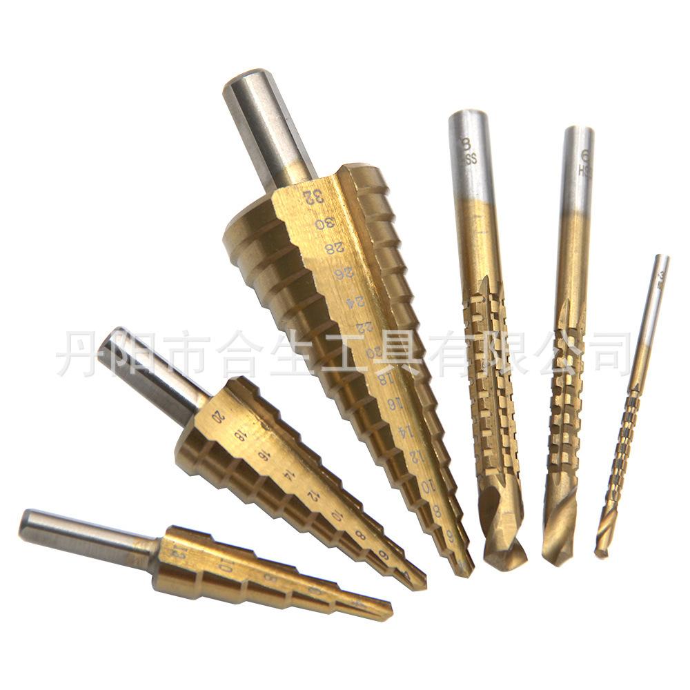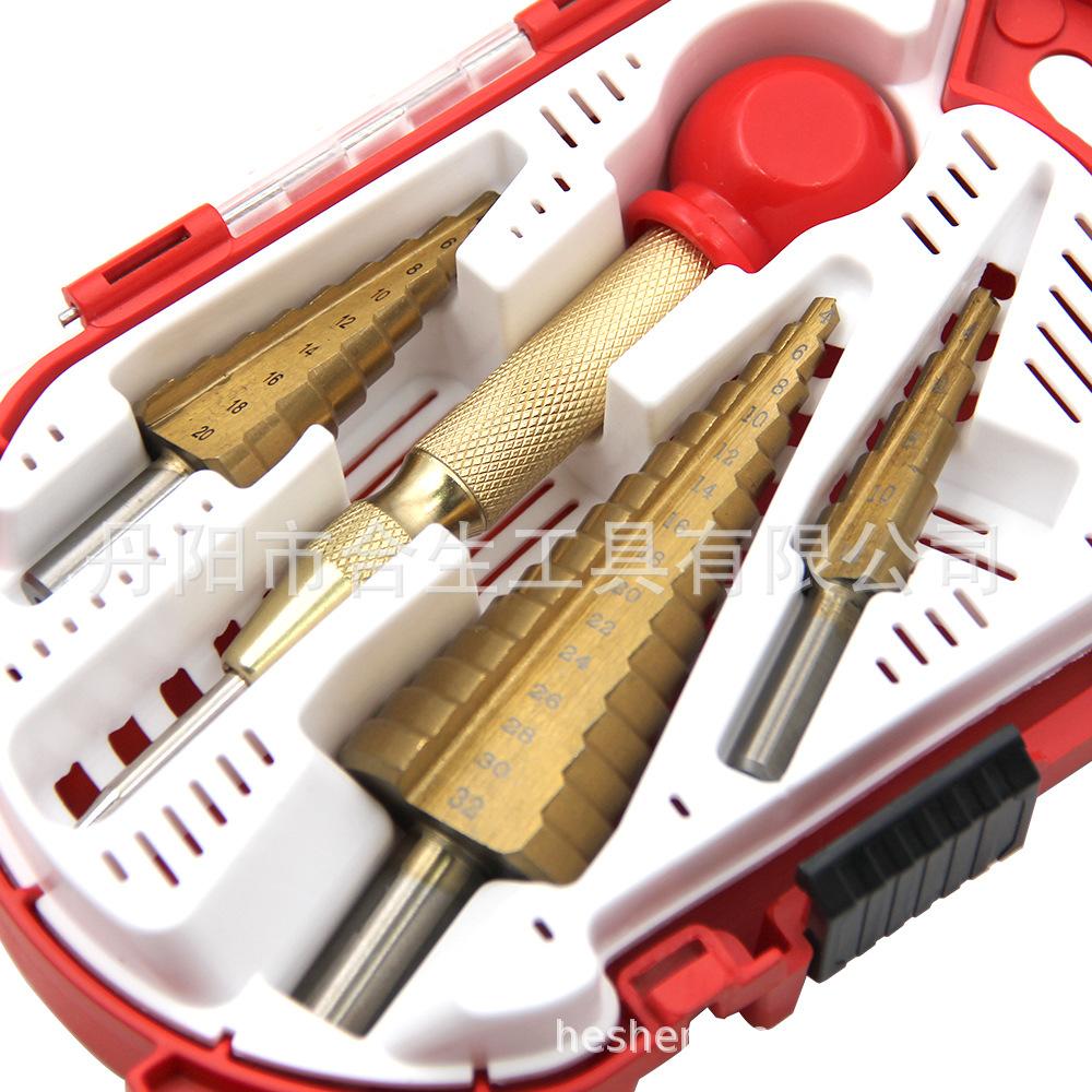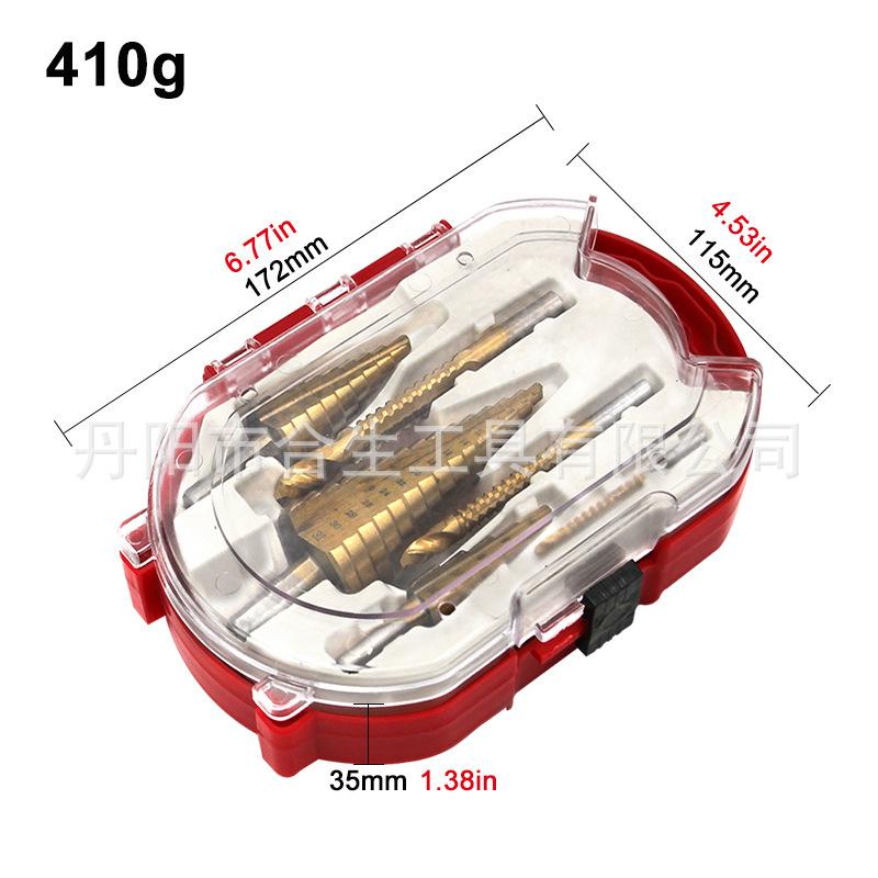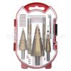 3 piezas broca escalonada + punzón de centro caja de plástico roja |