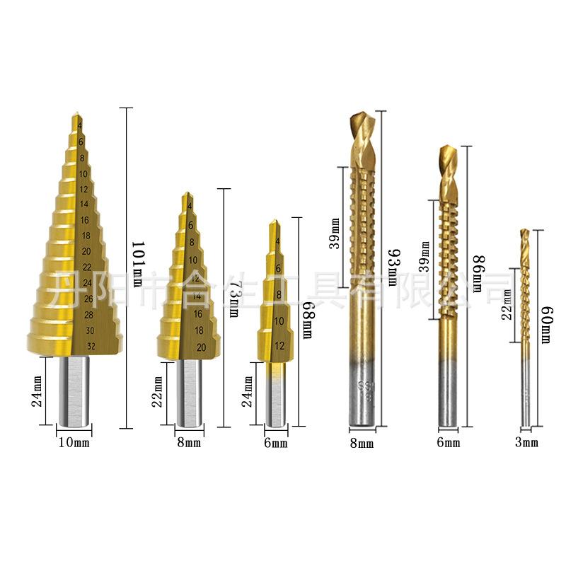 | Broca escalonada de 3 piezas + broca sierra de 3 piezas en caja de plástico rojo | 40 | 53*23*29cm | 17 kilos |