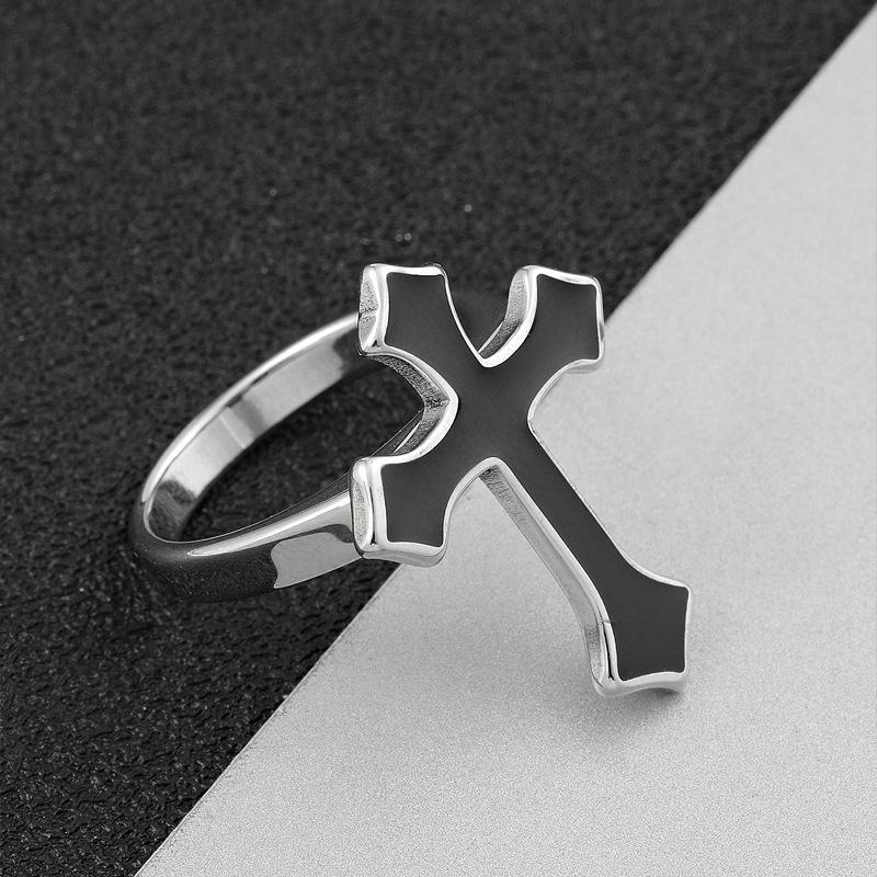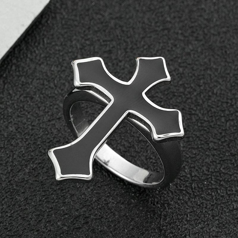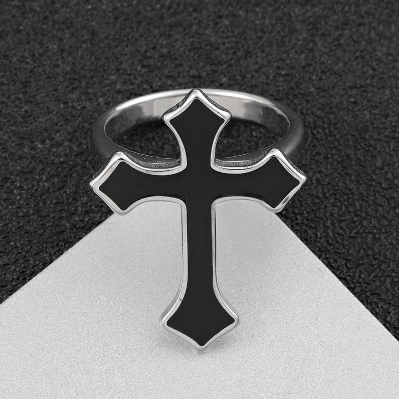 Suministro transfronterizo europeo y americano anillo retro cruz personalizado de acero de titanio para hombre acero inoxidable joyería hip hop fábrica venta al por mayor