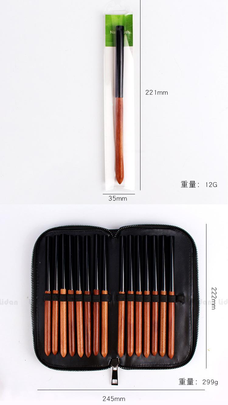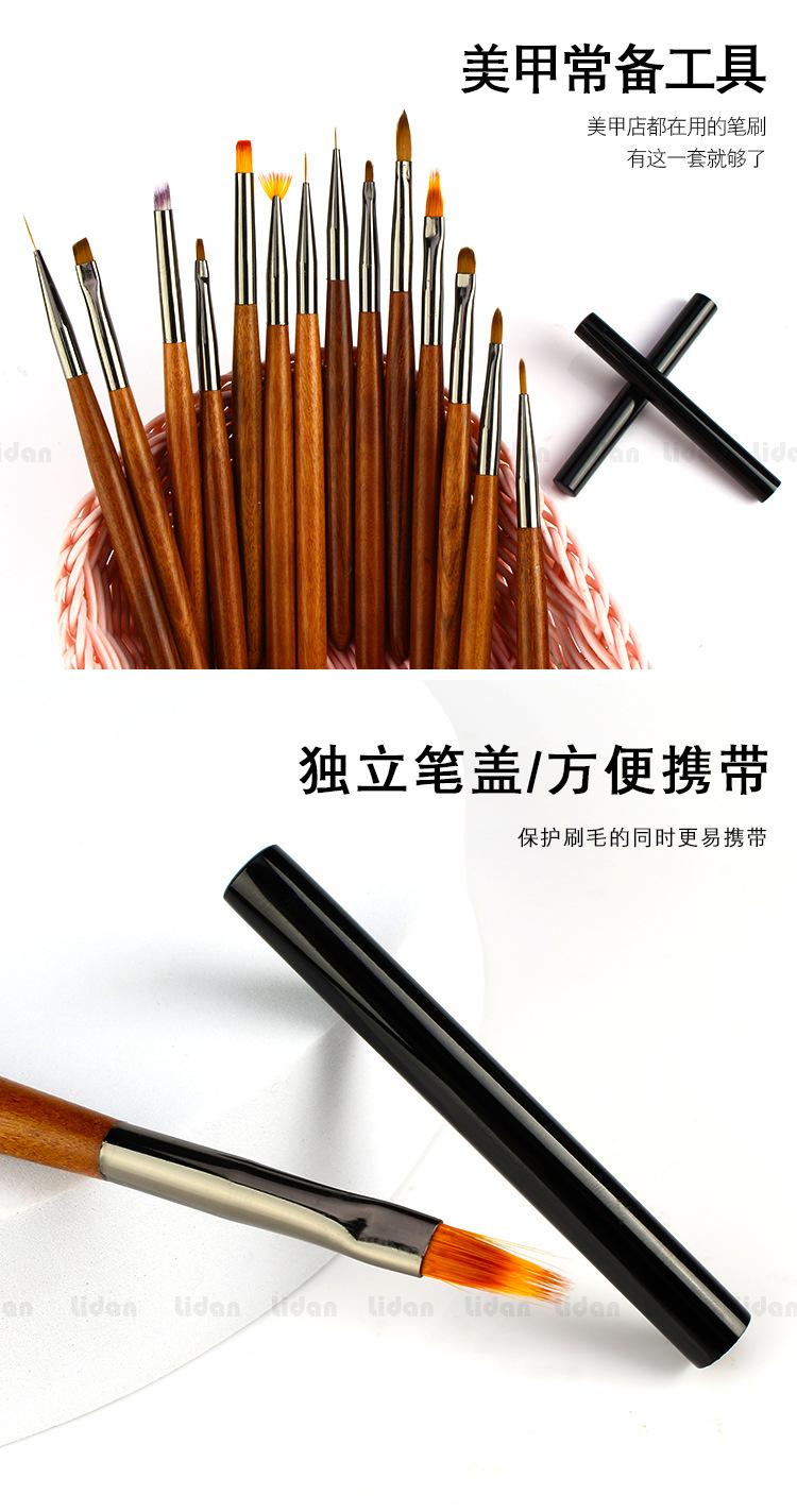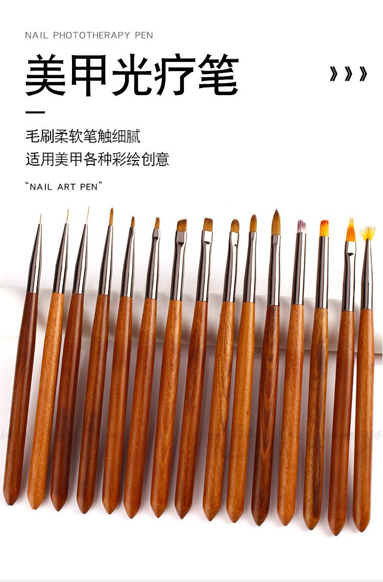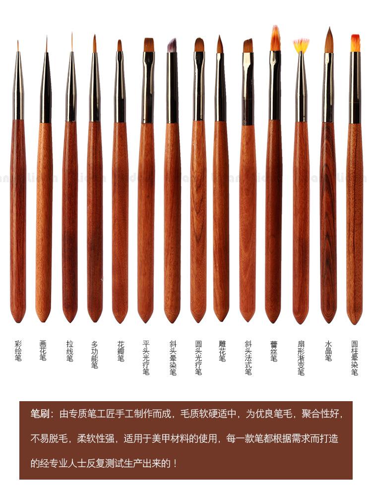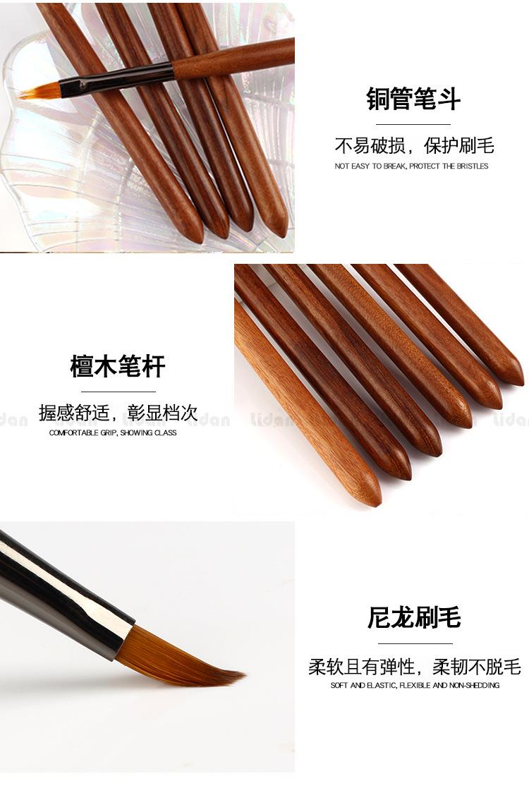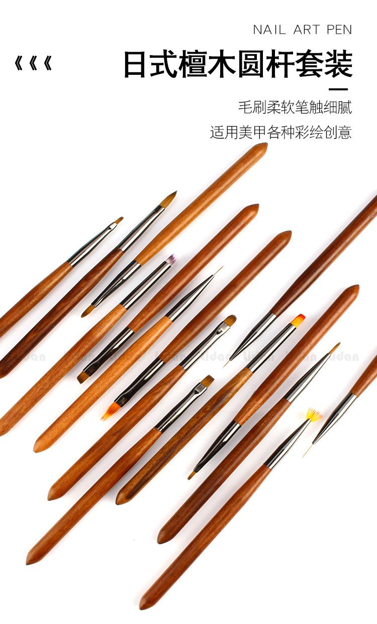 Sandalwood nail art brush set - drawing, painting, floral, round & flat tips - gel polish, plaid, gradient, and carving brushes