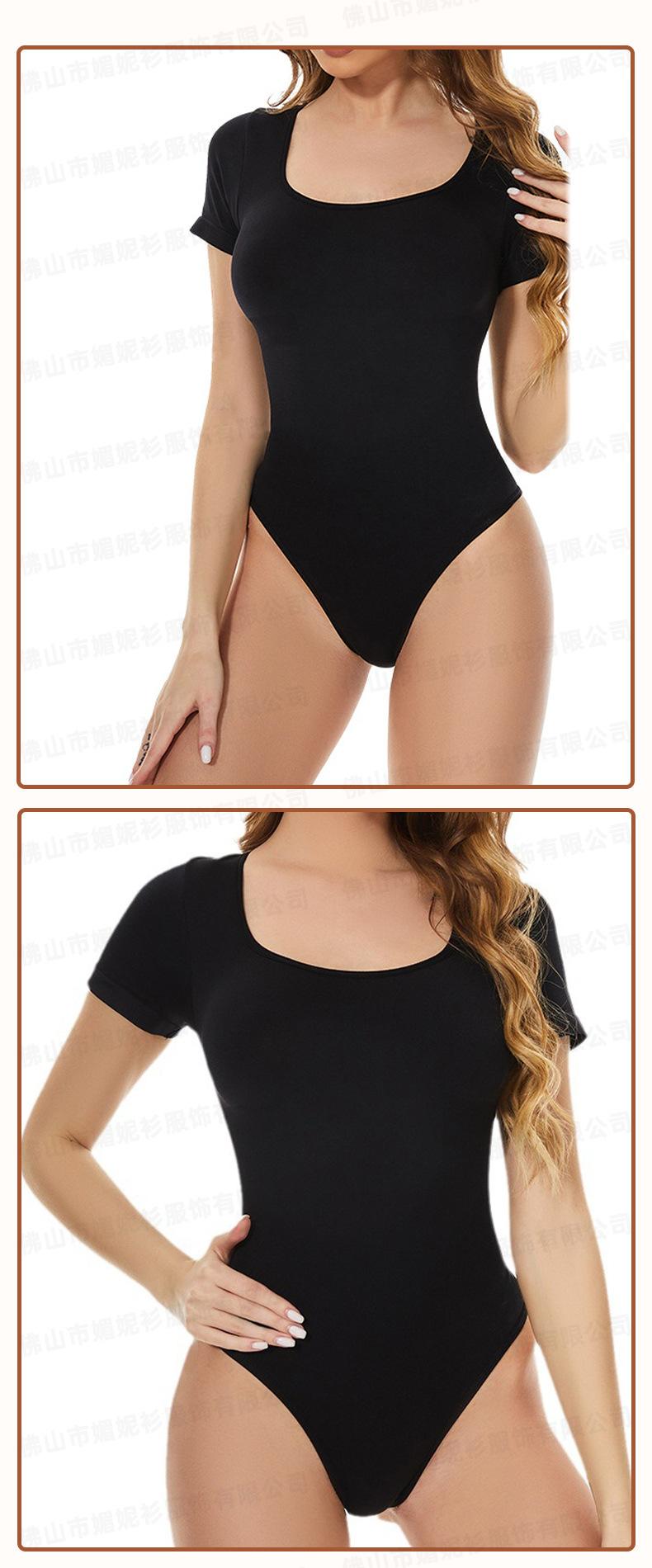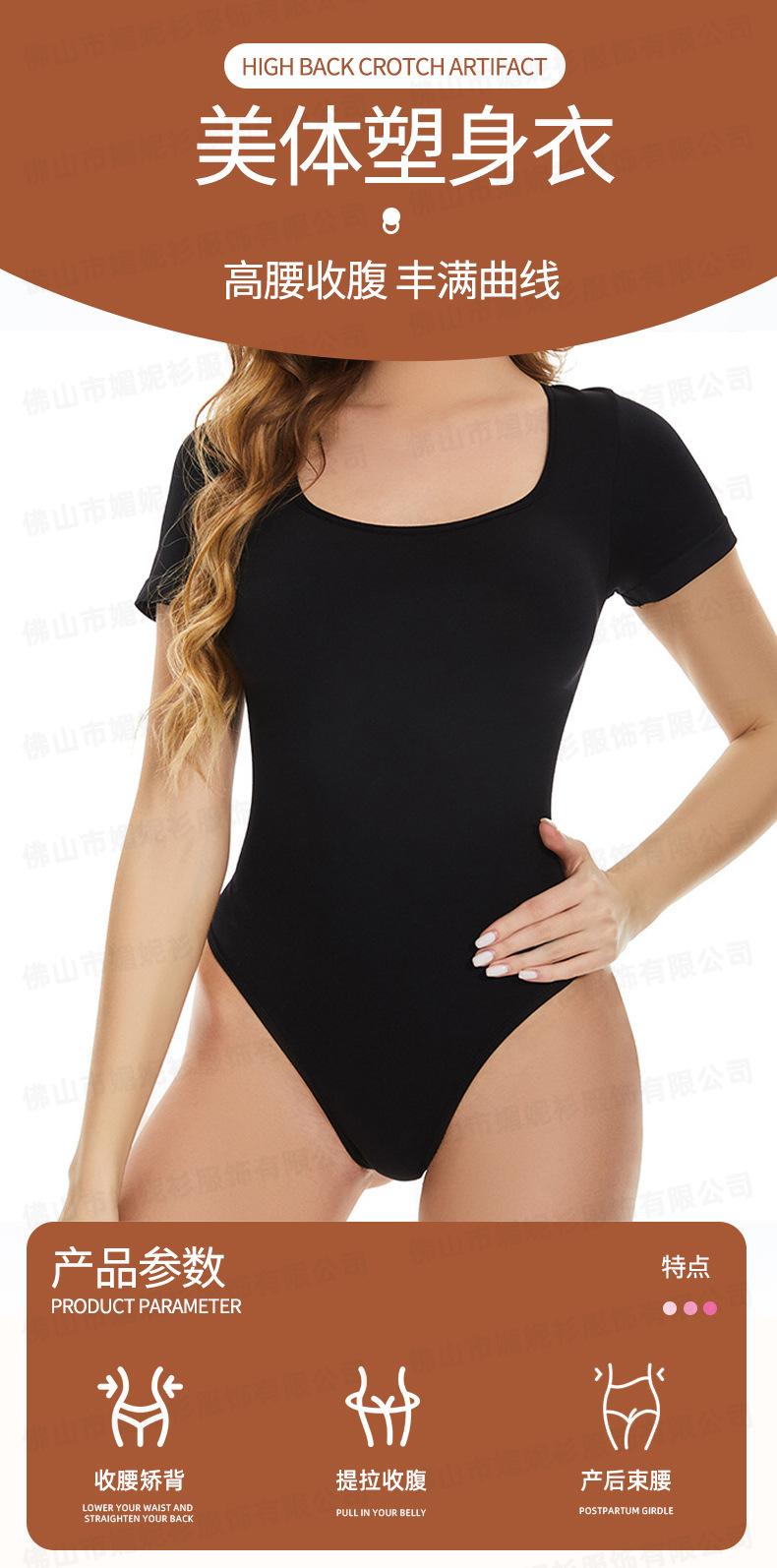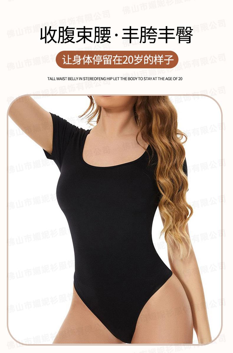 Mono de color liso para mujer, base elástica alta, talla grande, levantamiento de cadera, manga corta, sin costuras, ropa moldeadora de cuerpo, mono bodyshap