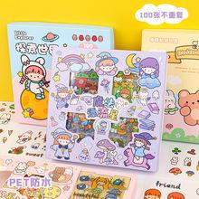Calcomanías PET impermeables de dibujos animados lindas 100 patrones de material para manualidades DIY calcomanías momo al por mayor en caja